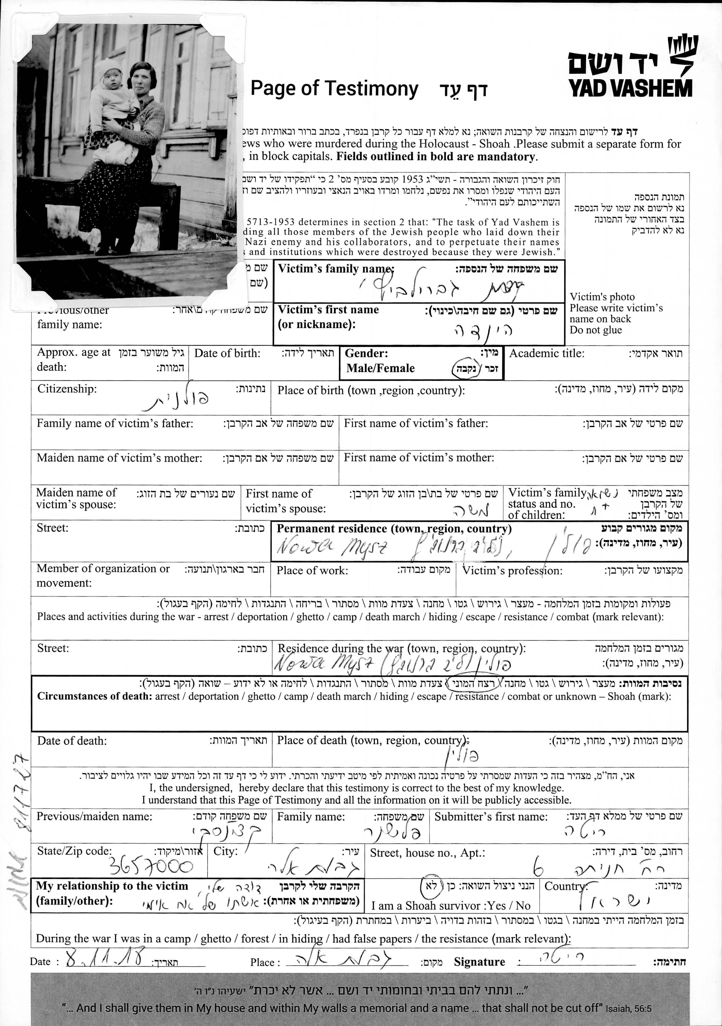 Yad Vashem - Pages of Testimony Names Memorial Collection