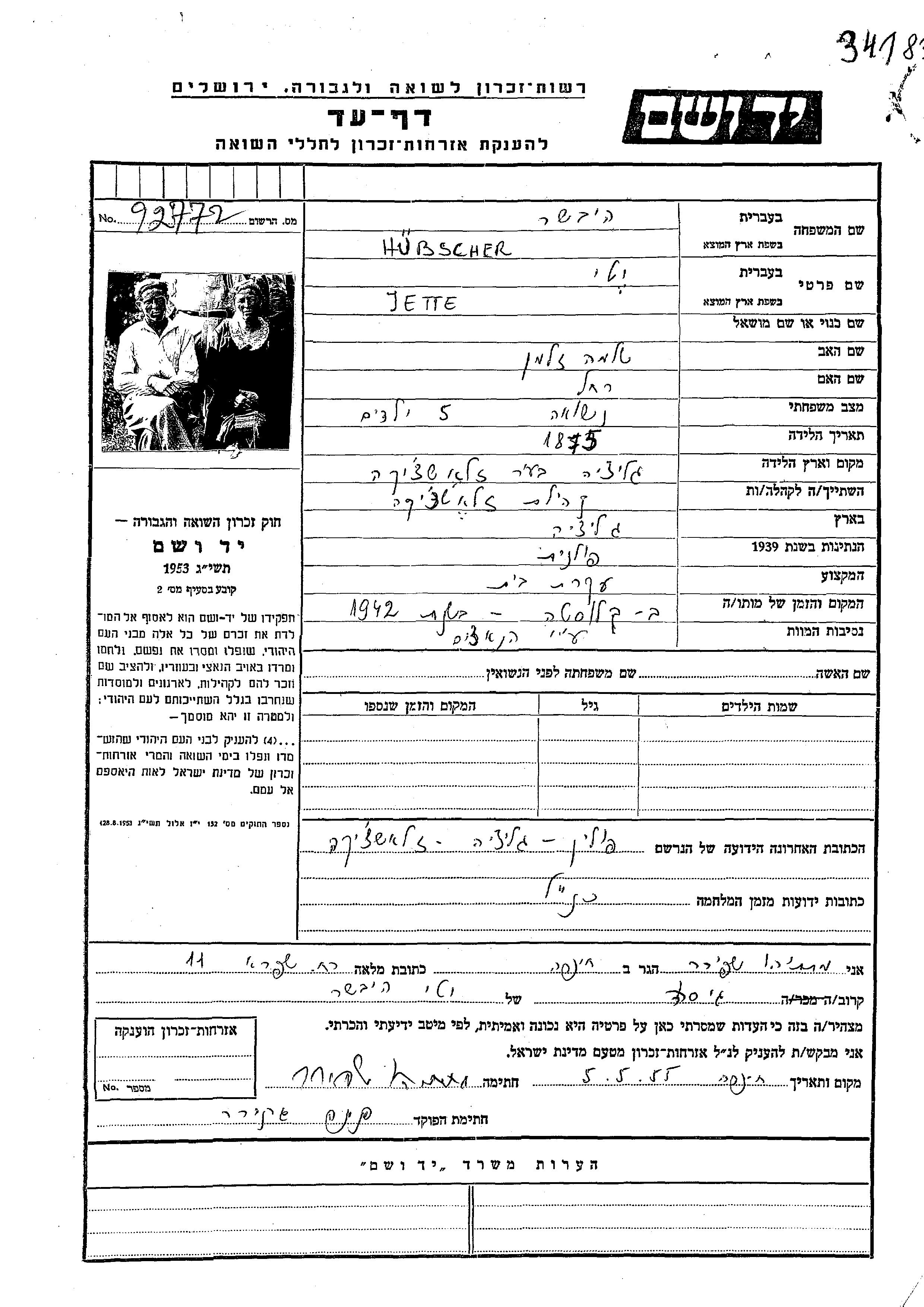 Yad Vashem - Pages of Testimony Names Memorial Collection
