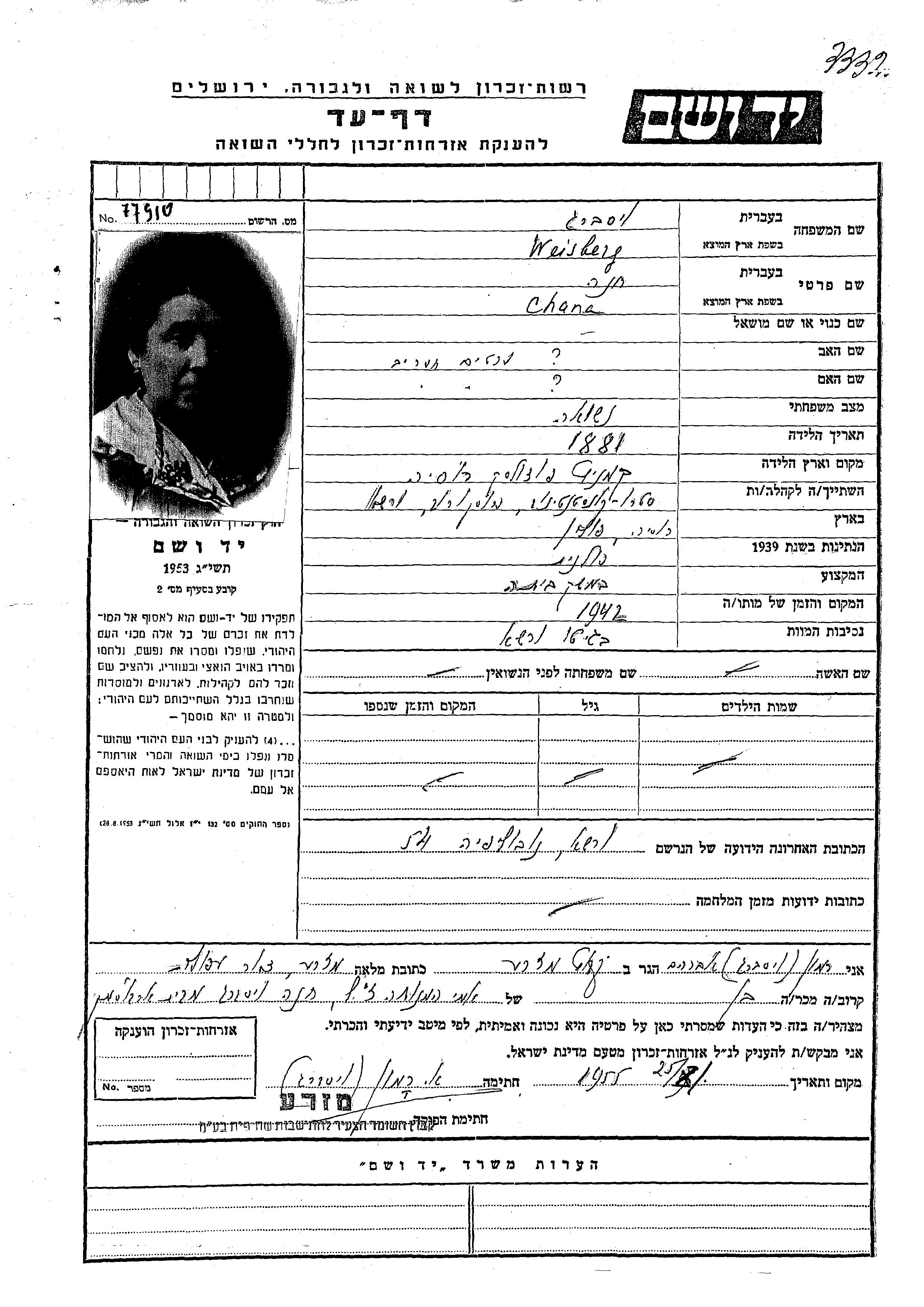 Chana a été assassinée pendant la Shoah. Lieu de la mort: Warsaw, Pologne en 1942.