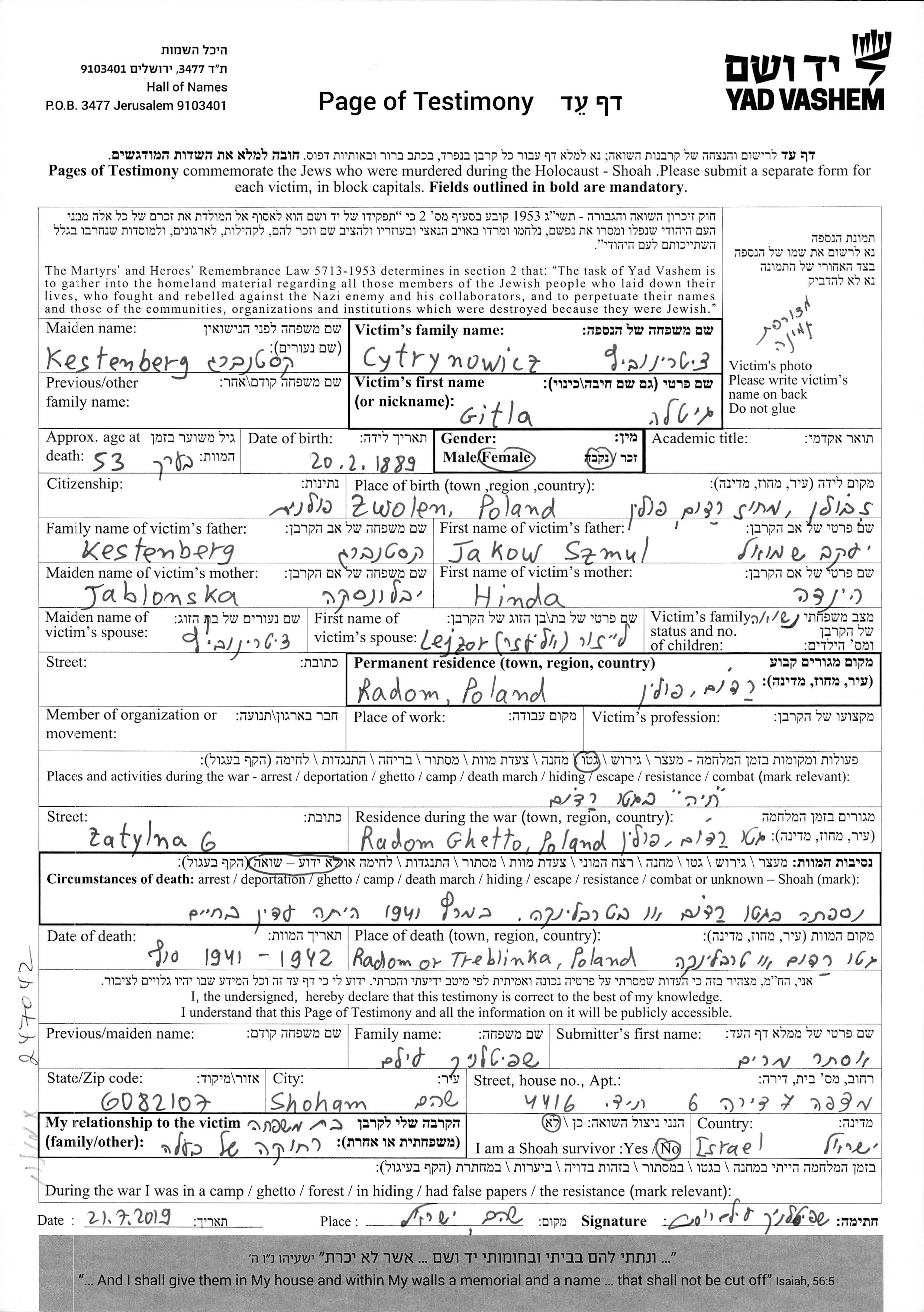 Recherche par lieu de résidence permanente avant la Shoah, ville, village, département, région ou pays.