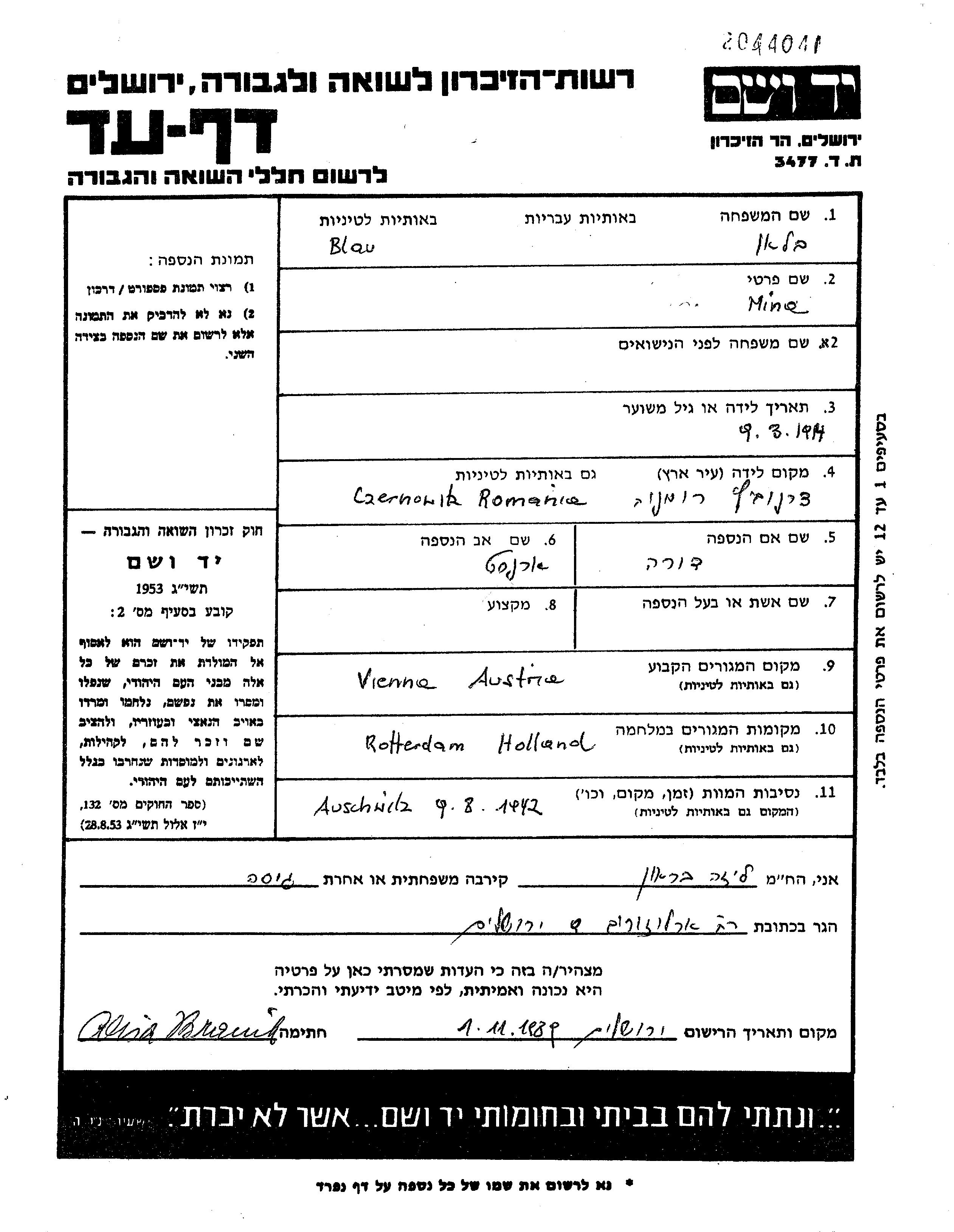 Yad Vashem - Pages of Testimony Names Memorial Collection