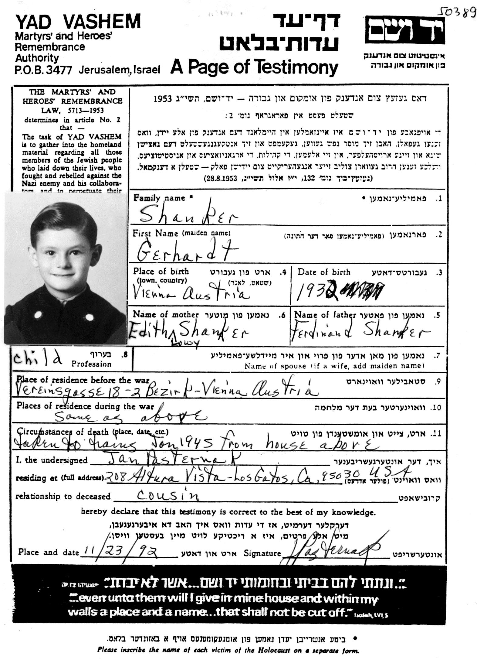 Gerhard Shanker est né à Wien, Autriche en 1930. Avant la seconde guerre mondiale il vivait à Wien, Autriche.