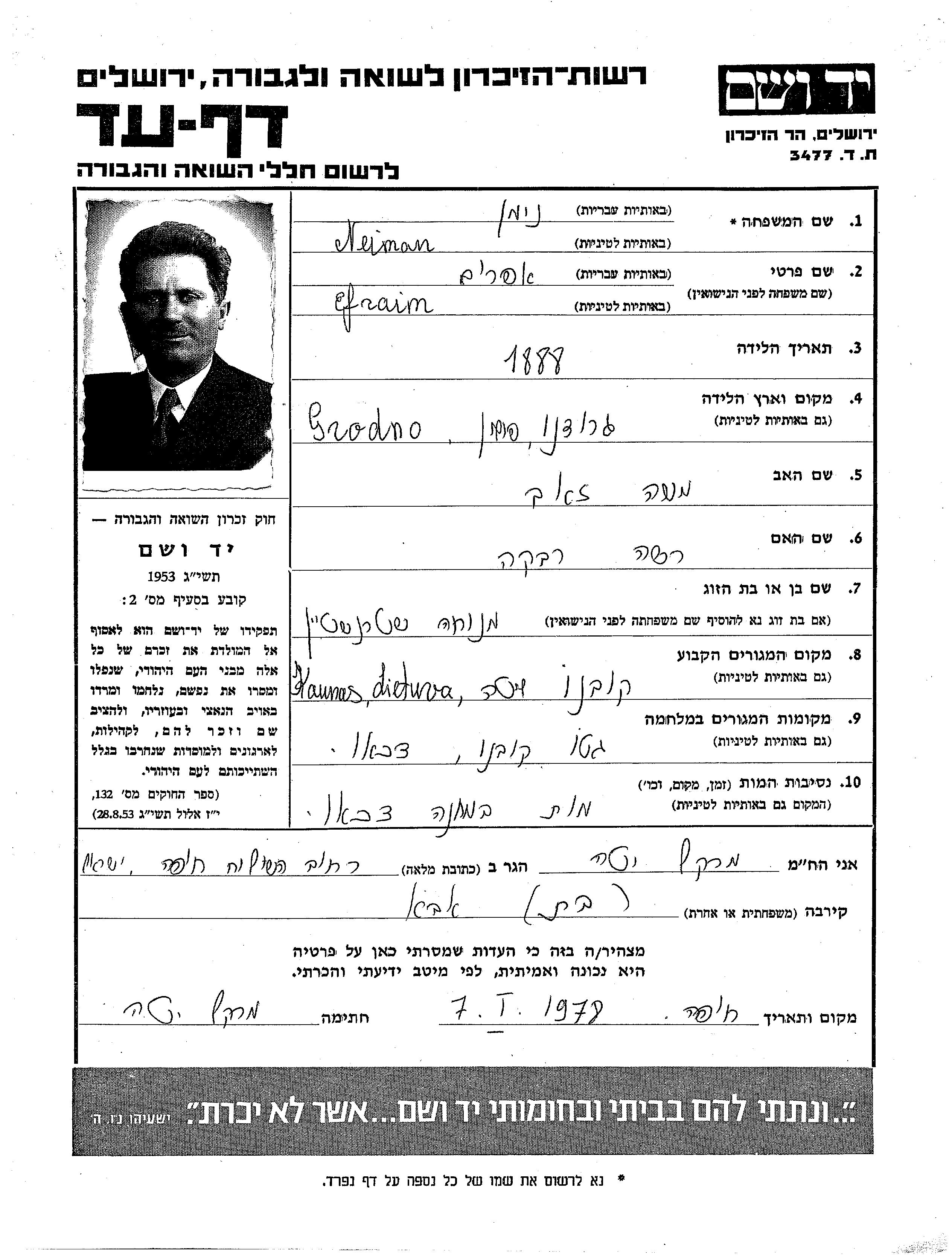 Efraim Neiman Niman est né à Grodno, Pologne en 1888. Avant la seconde guerre mondiale il vivait à Kaunas, Lituanie.