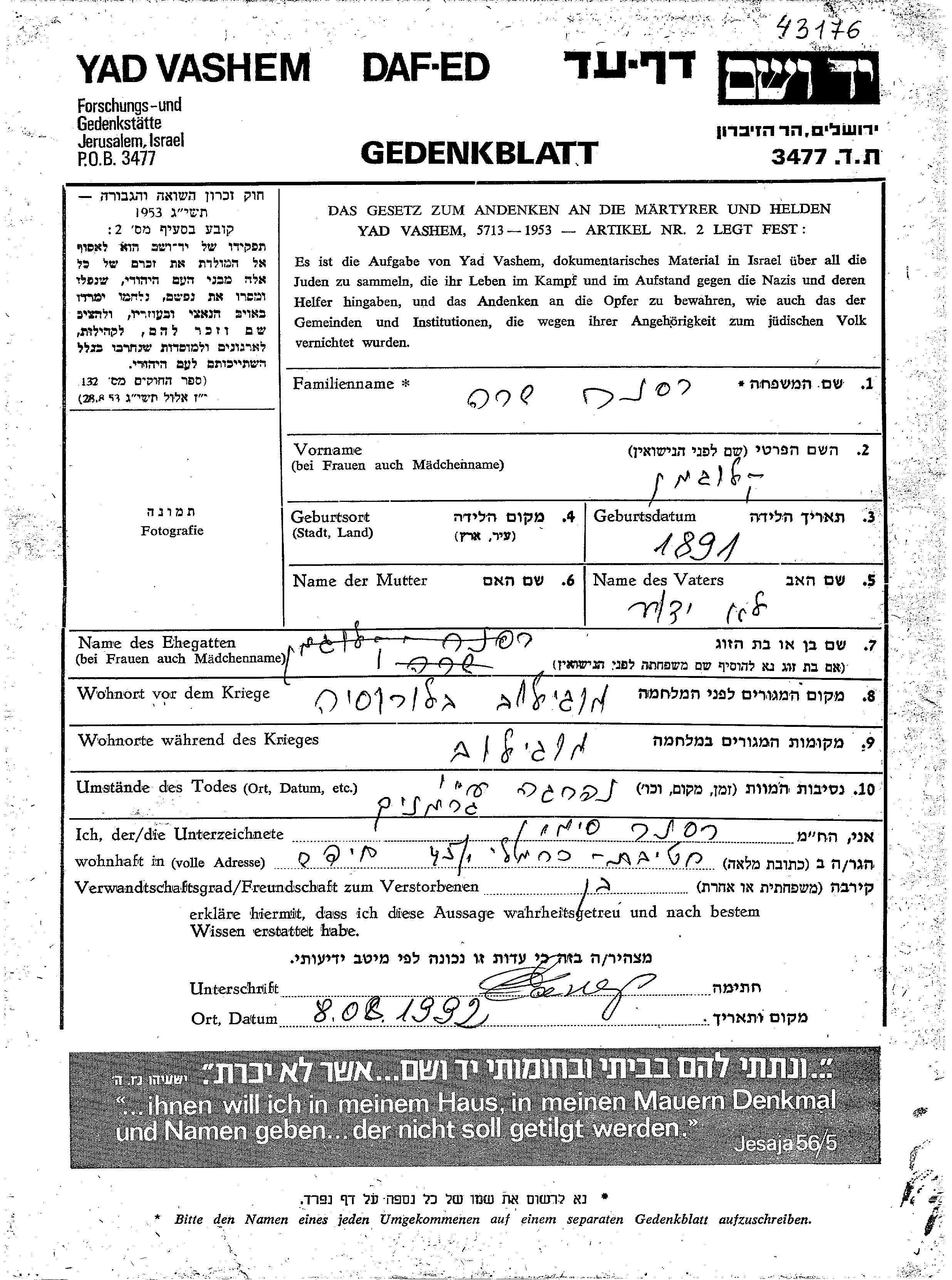 Yad Vashem - Pages of Testimony Names Memorial Collection