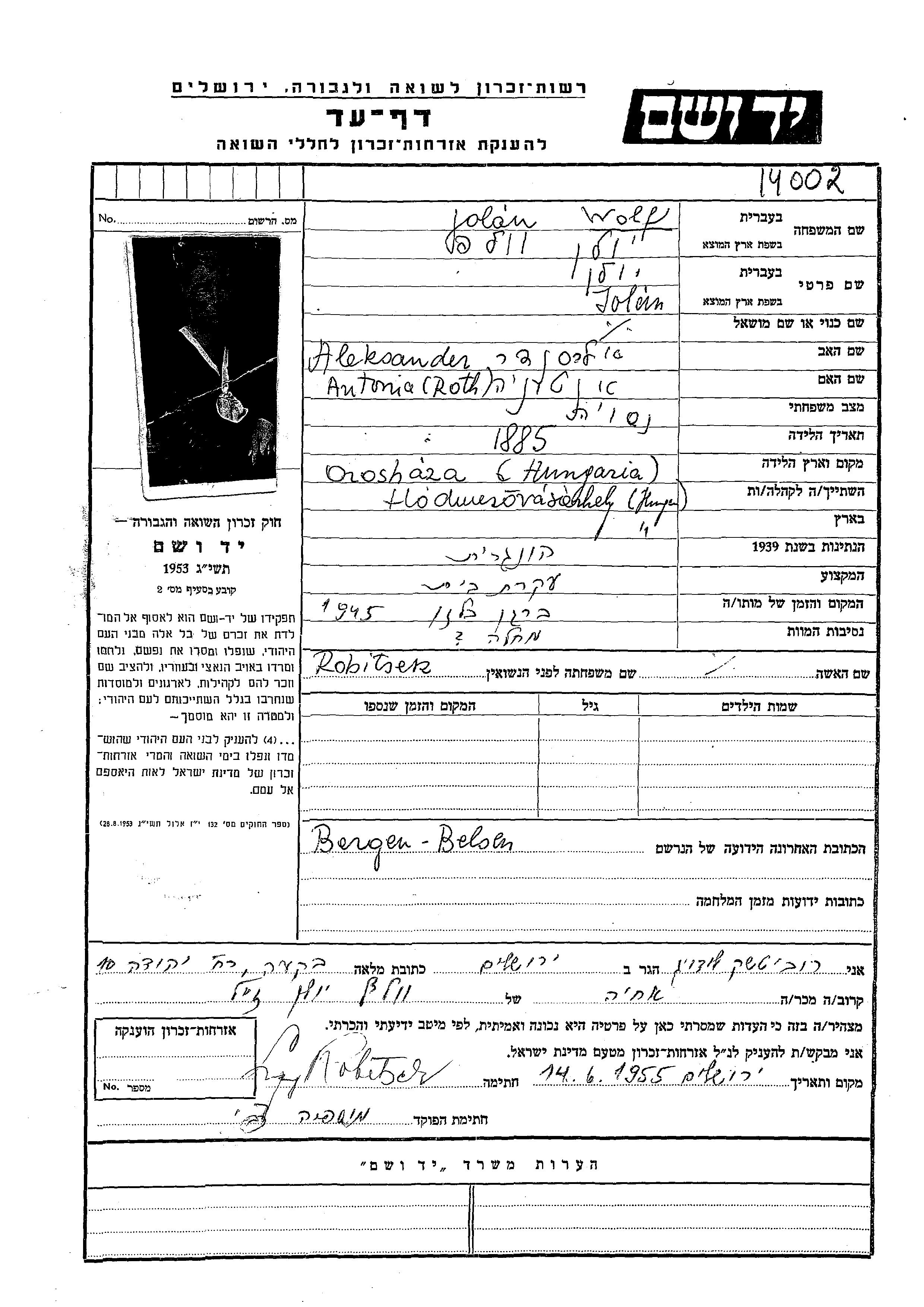 Yad Vashem - Pages of Testimony Names Memorial Collection