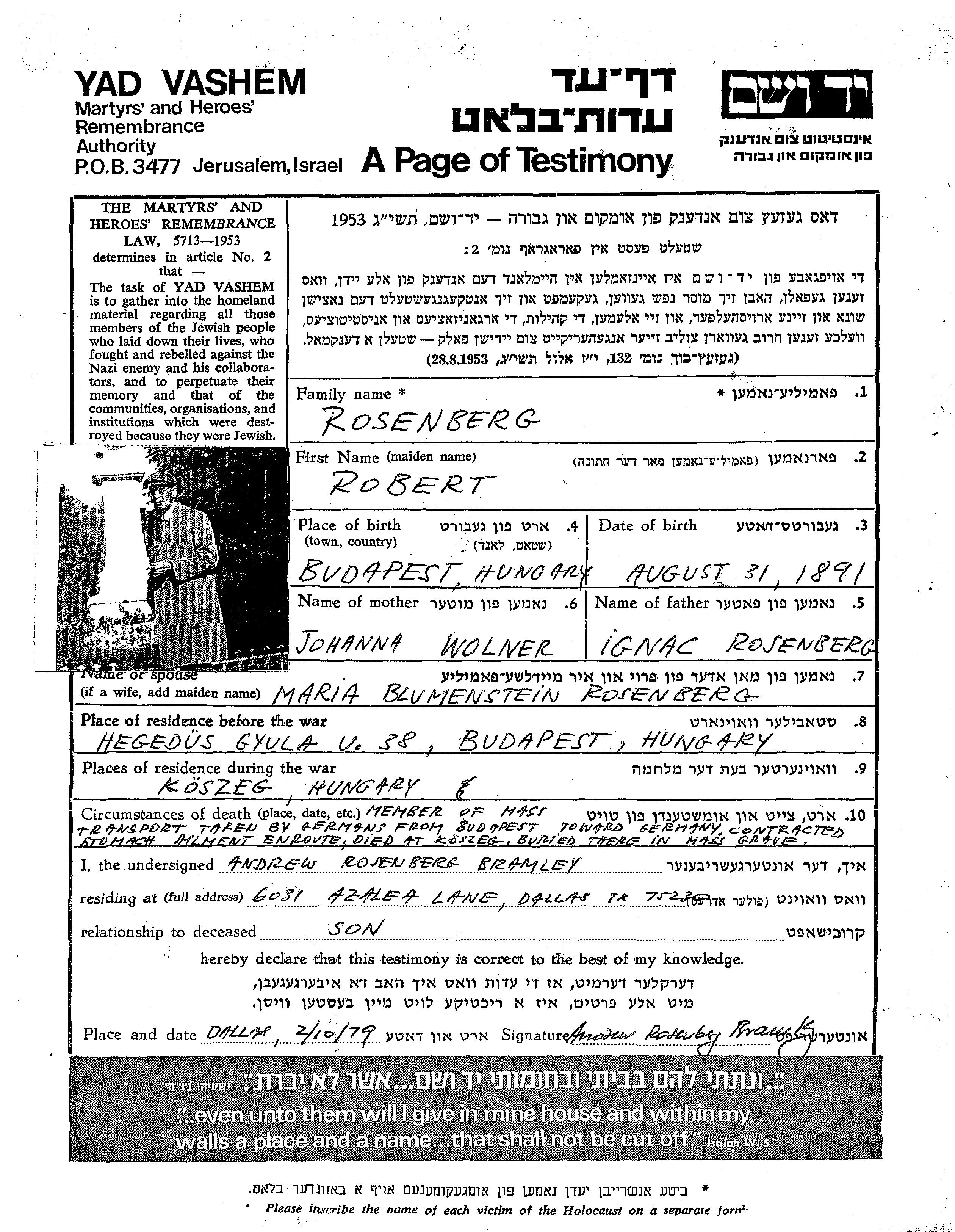 Yad Vashem - Pages of Testimony Names Memorial Collection