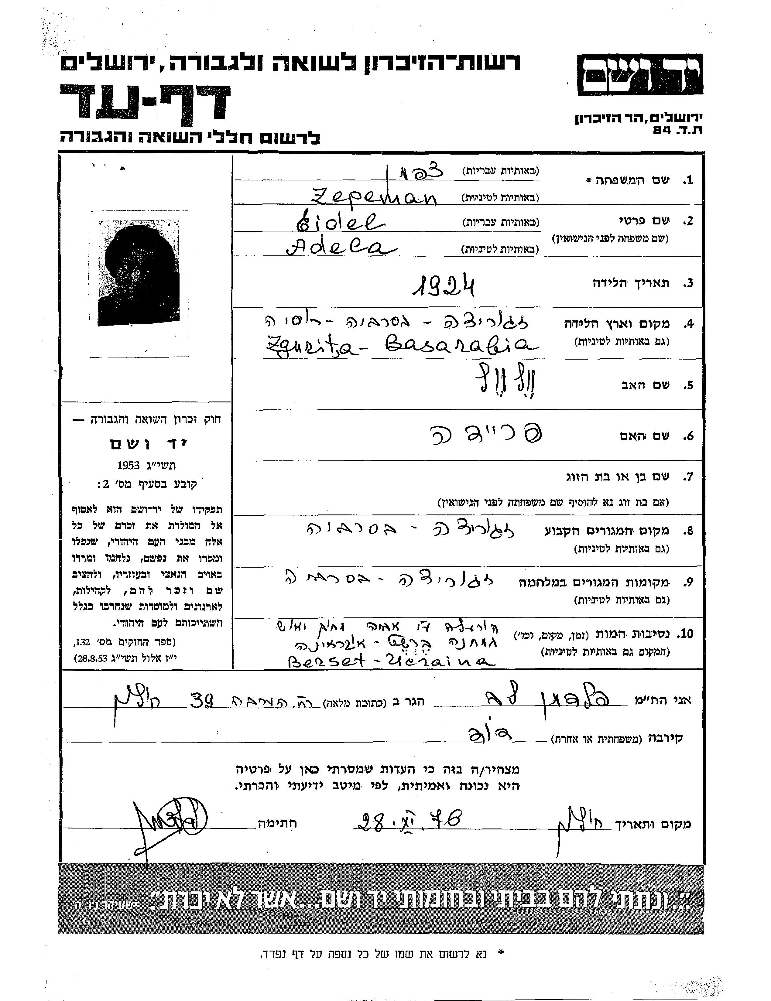 Yad Vashem - Pages of Testimony Names Memorial Collection