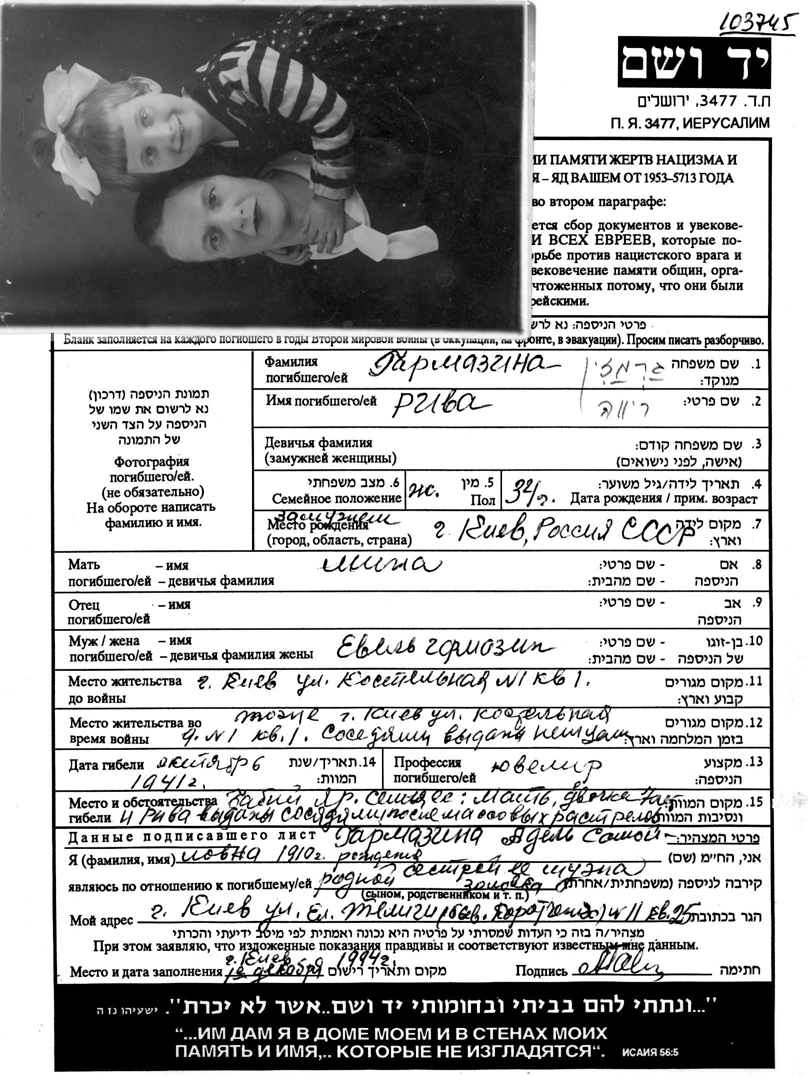 Yad Vashem - Pages of Testimony Names Memorial Collection