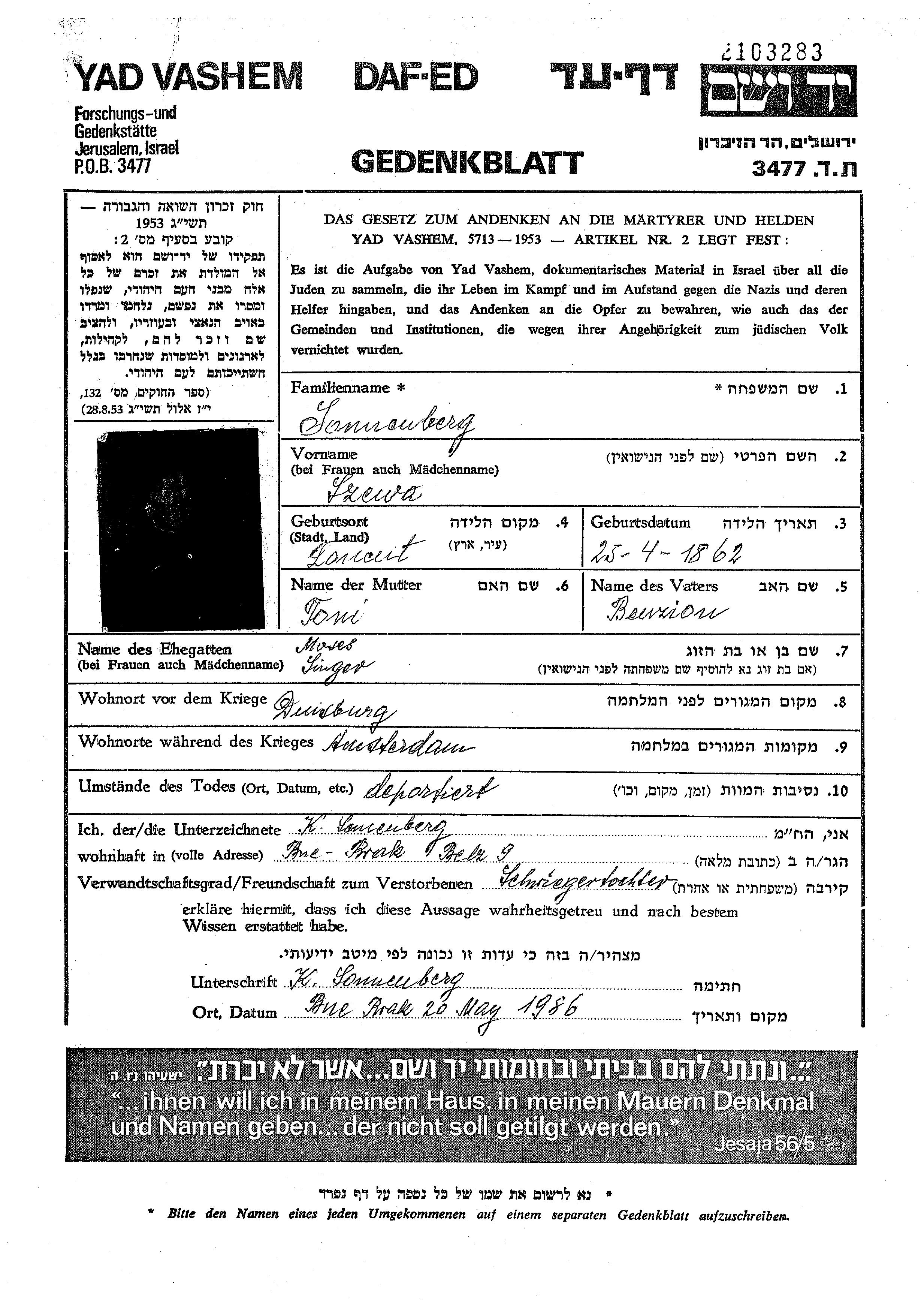 Yad Vashem - Pages of Testimony Names Memorial Collection