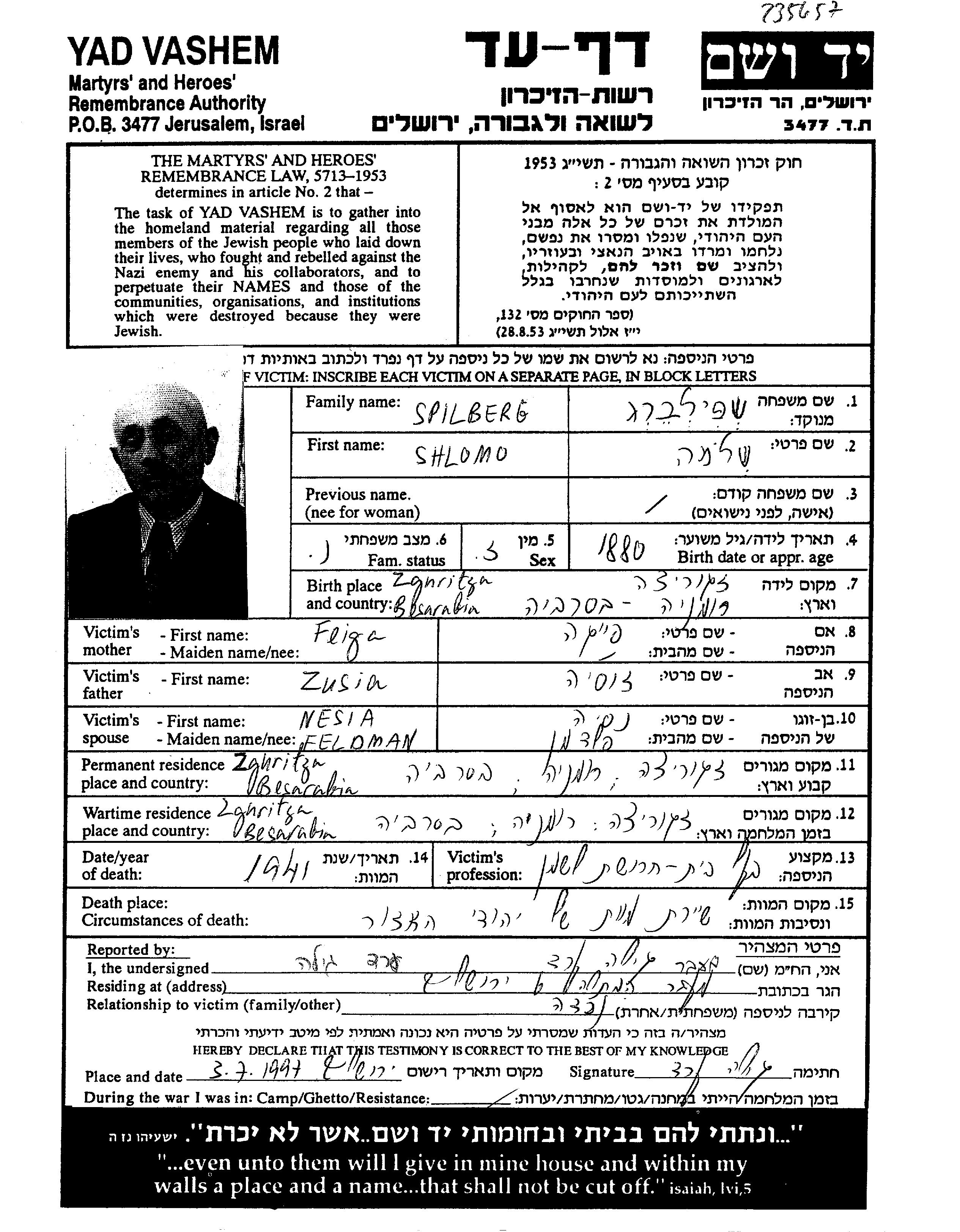 Yad Vashem - Pages of Testimony Names Memorial Collection
