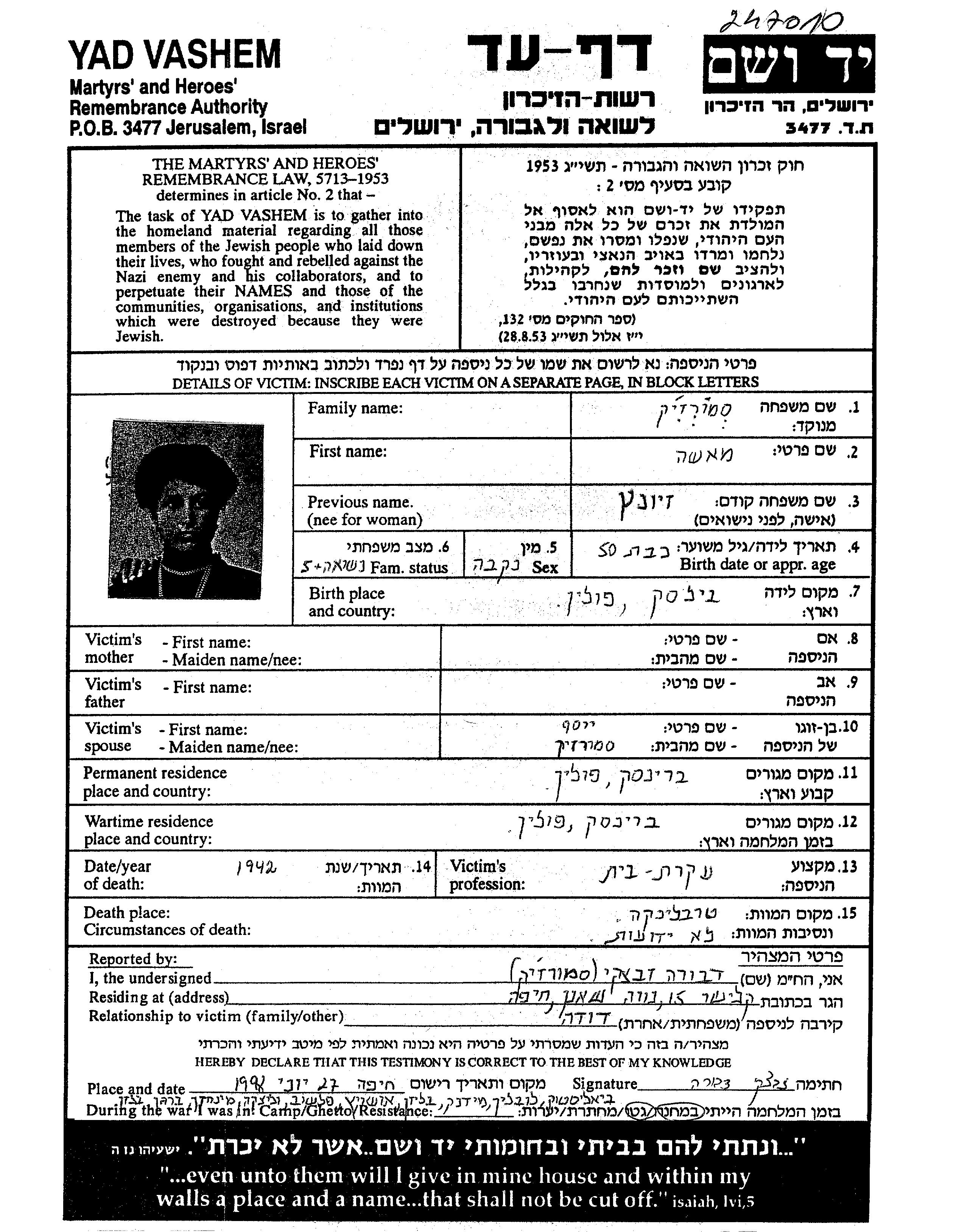 Smurzik | Masha | Brześć nad Bugiem, Pologne | Feuille de témoignage | |