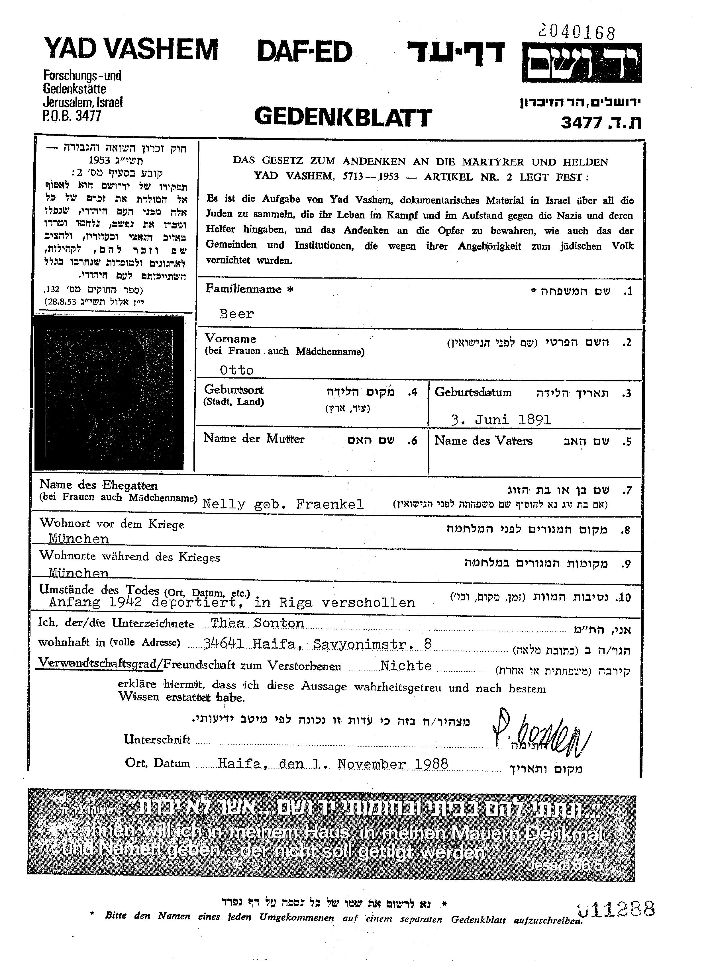 Otto Beer est né en 1891. Avant la seconde guerre mondiale il vivait à Muenchen, Allemagne.