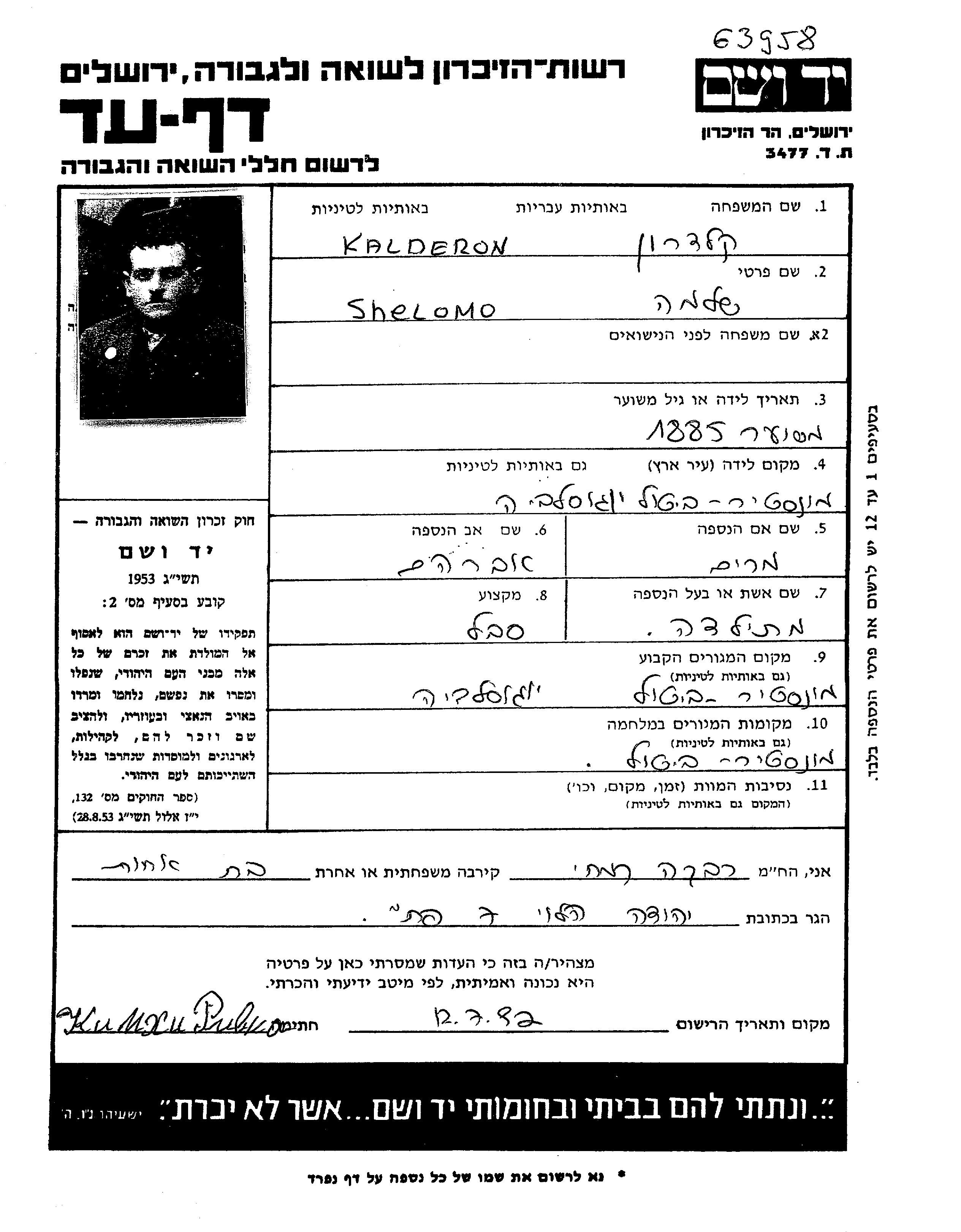 | Kalderon | Shelomo | 1885 | Monastir, Yugoslavie | Feuille de témoignage |