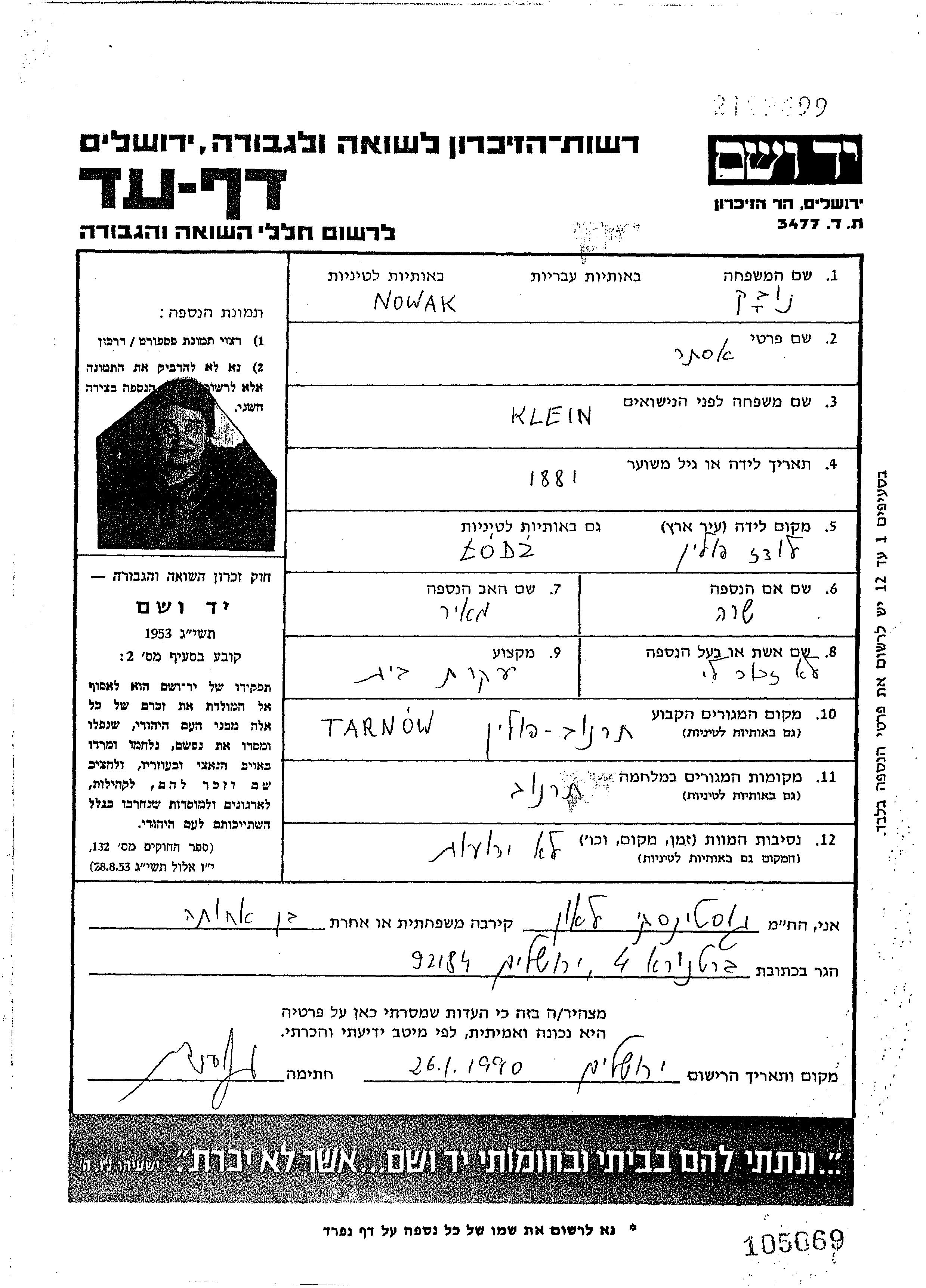 Yad Vashem - Pages of Testimony Names Memorial Collection