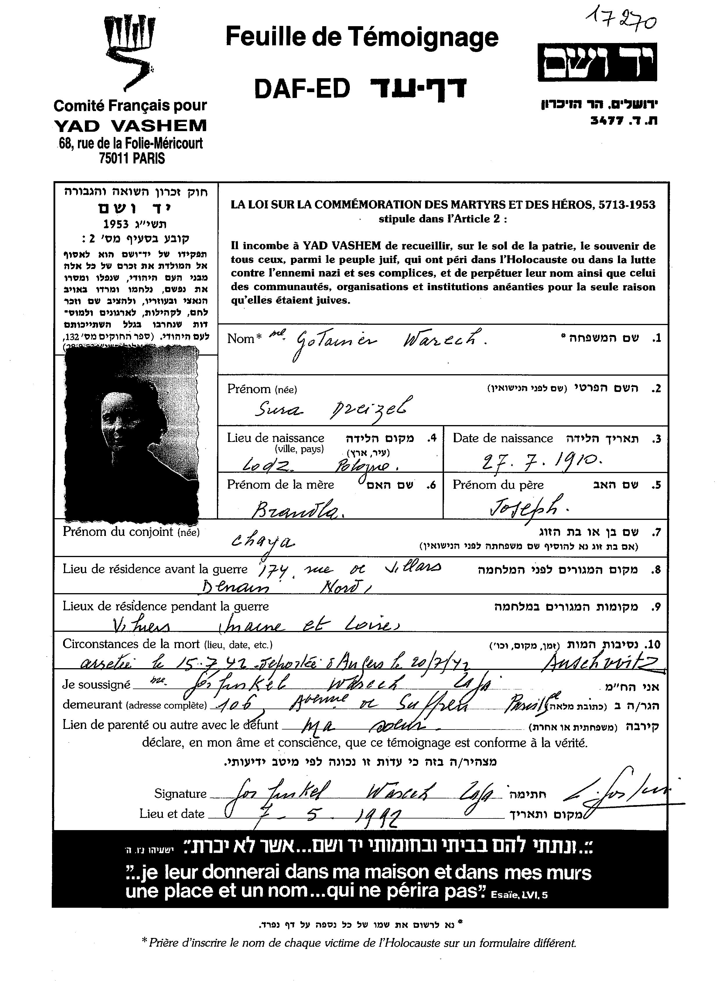 Yad Vashem - Pages of Testimony Names Memorial Collection