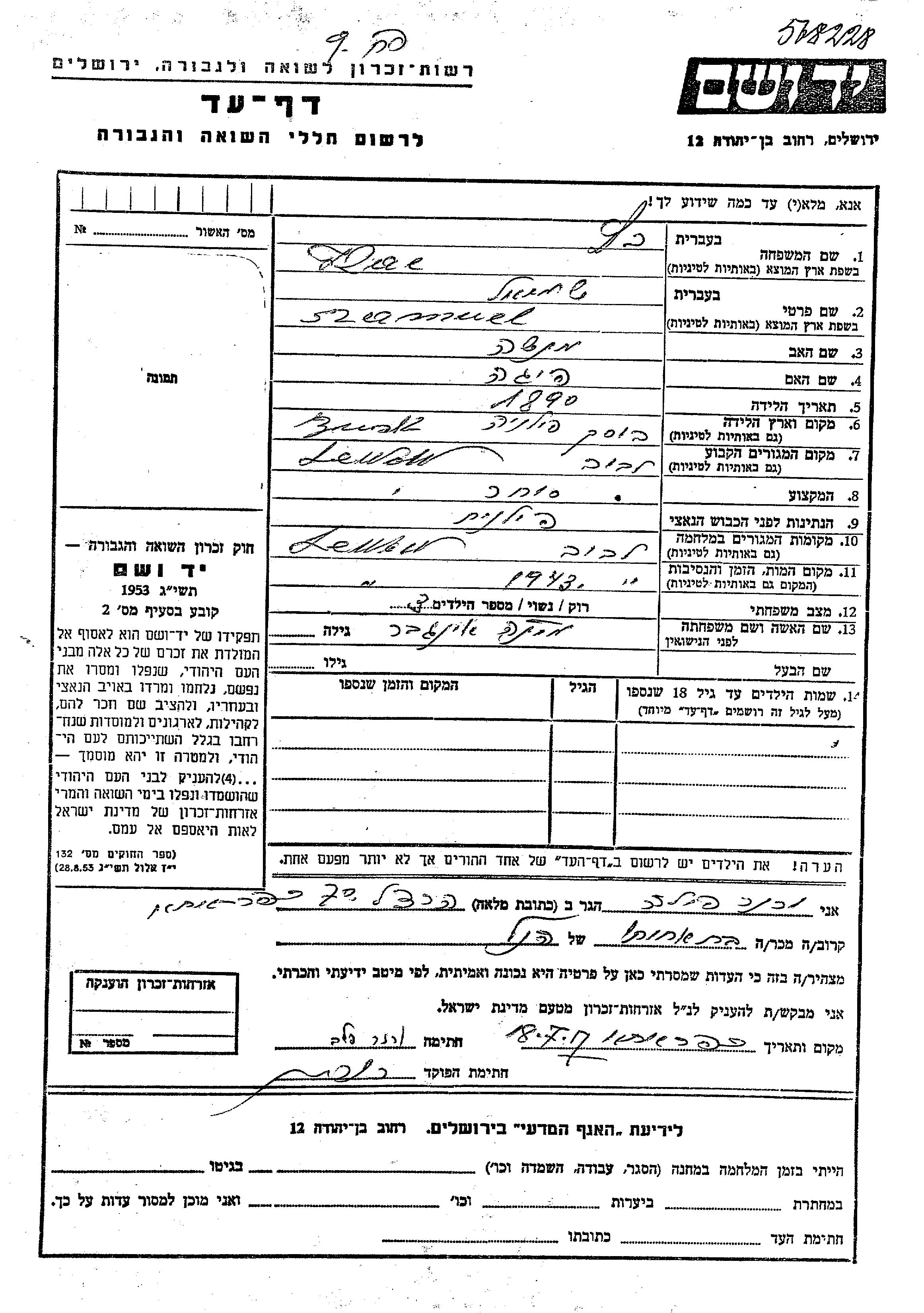 Kac | Szamuel | 1890 | Lwow, Pologne | Feuille de témoignage |