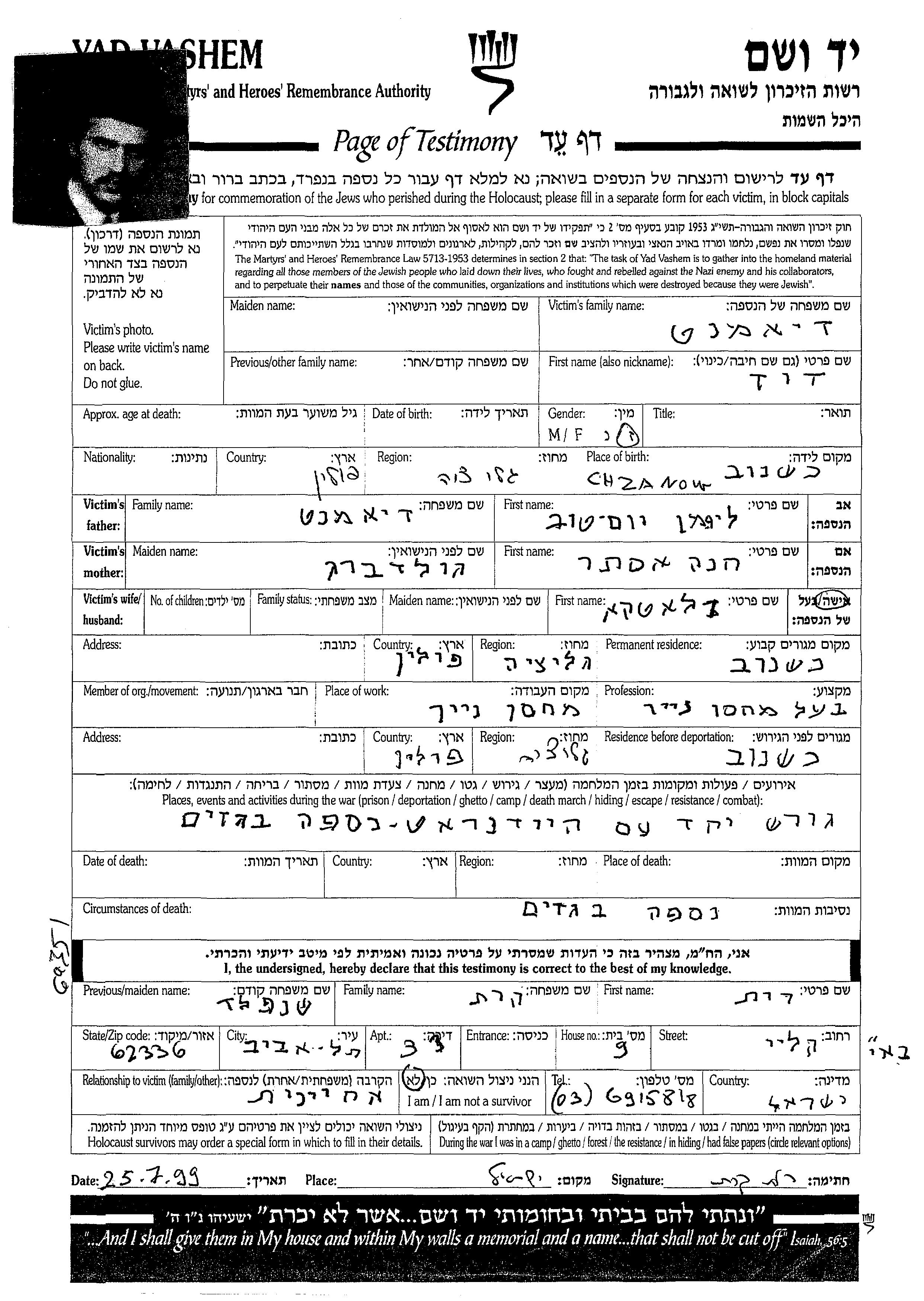 Yad Vashem - Pages of Testimony Names Memorial Collection