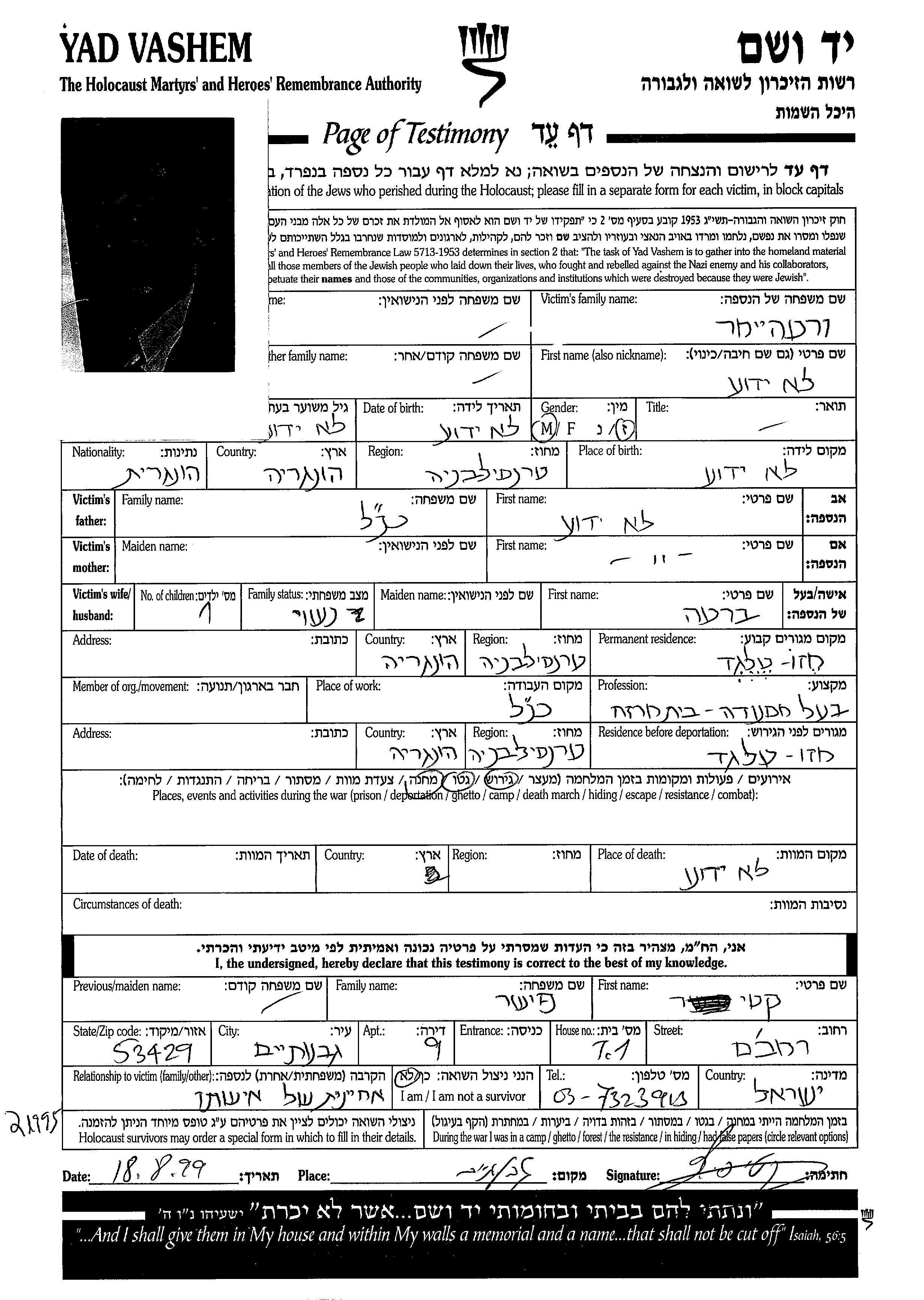 Yad Vashem - Pages of Testimony Names Memorial Collection