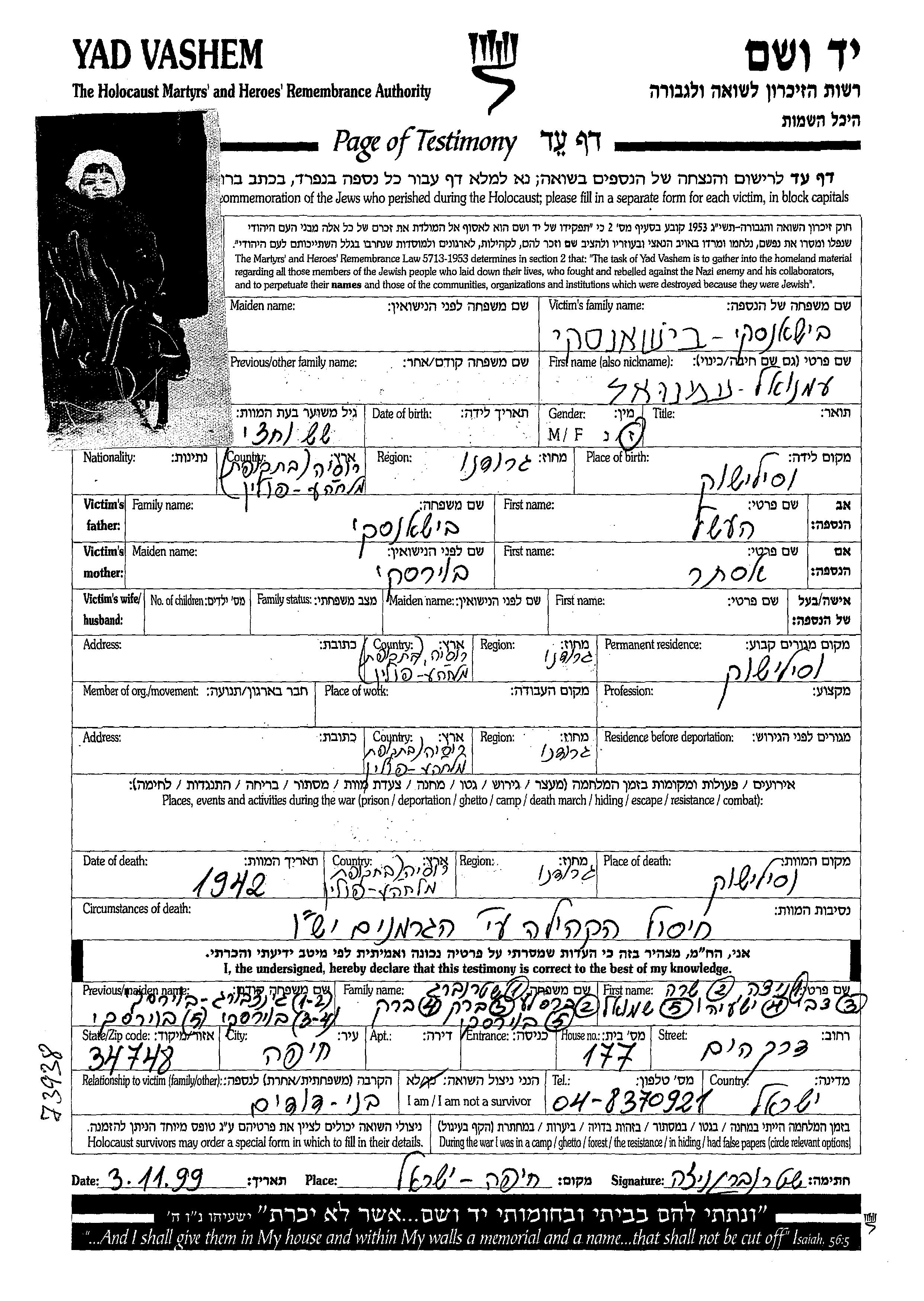 Yad Vashem - Pages of Testimony Names Memorial Collection