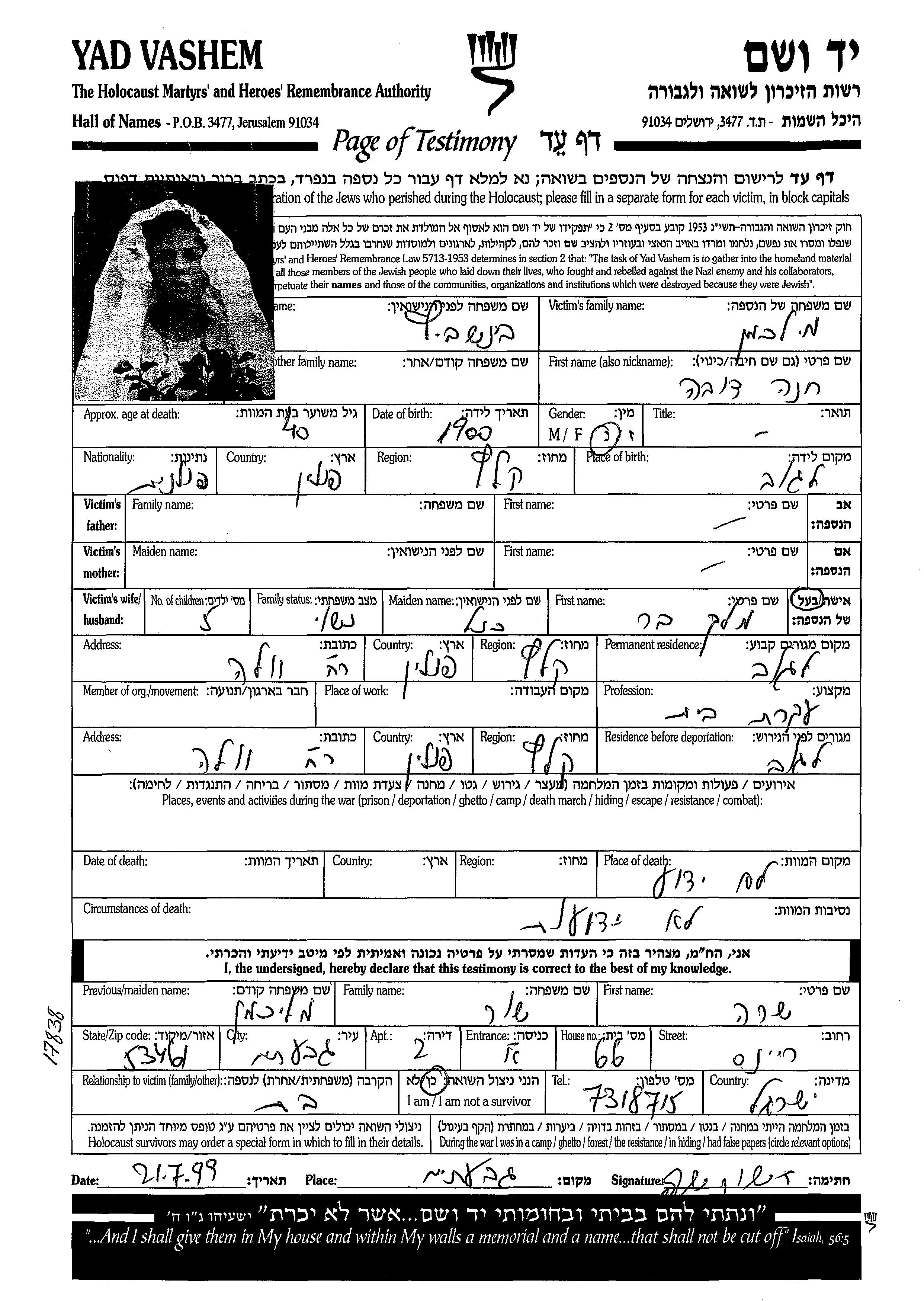 Yad Vashem - Pages of Testimony Names Memorial Collection