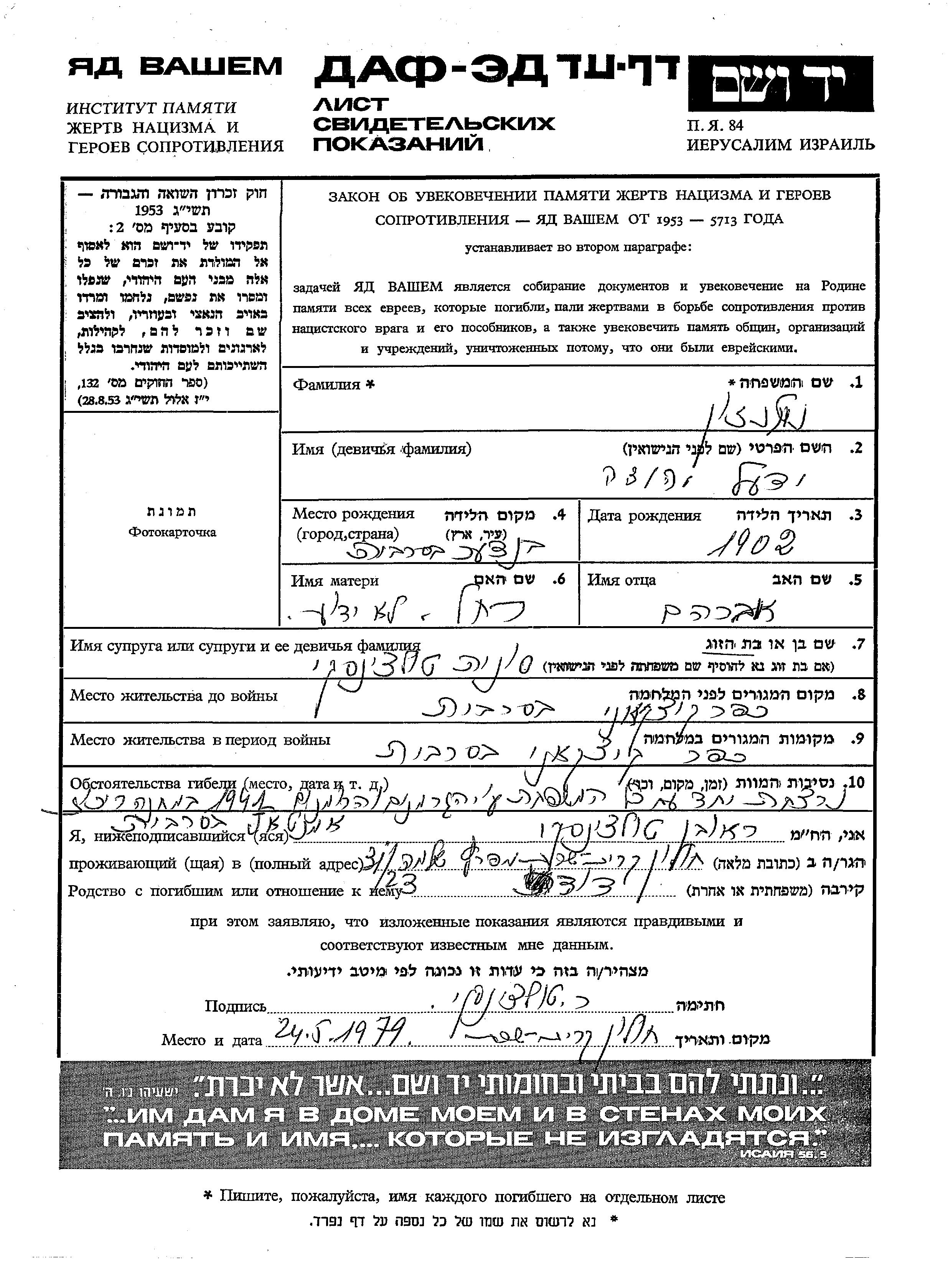 Yad Vashem - Pages of Testimony Names Memorial Collection