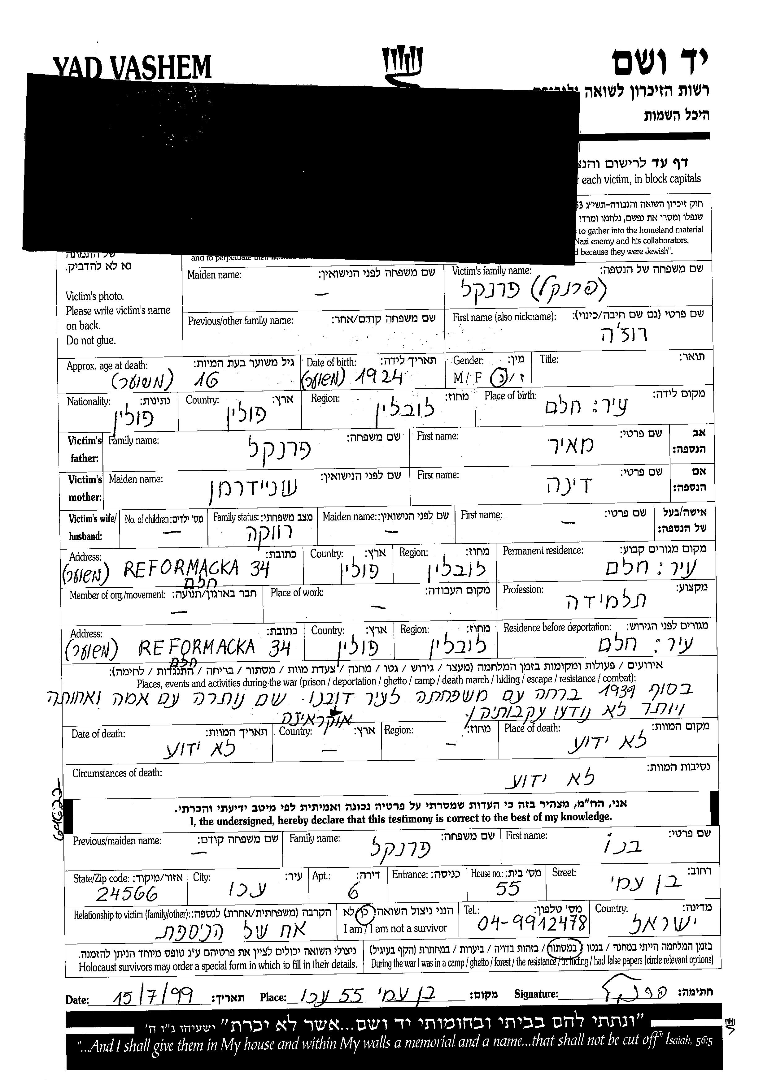 Yad Vashem - Pages of Testimony Names Memorial Collection