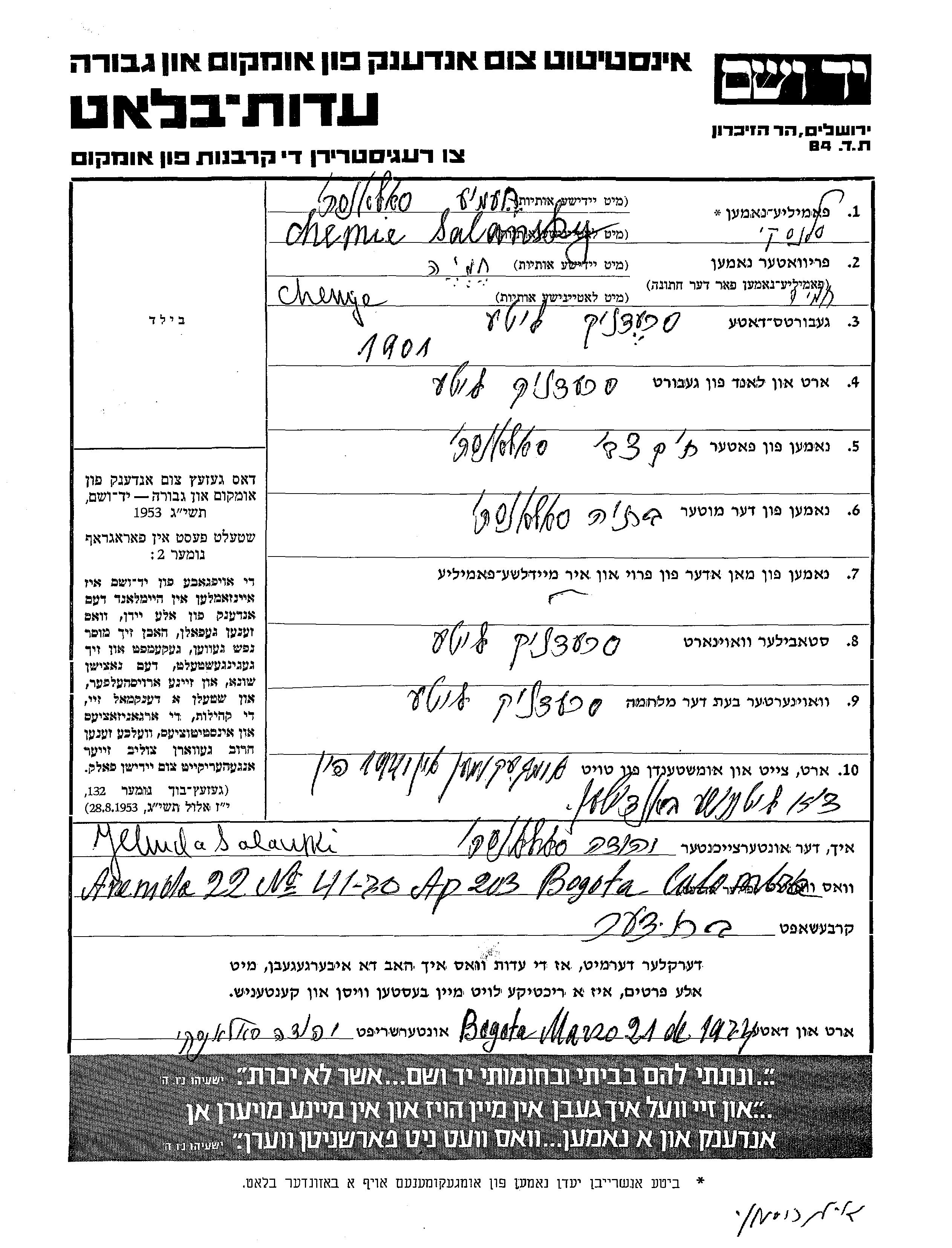Yad Vashem - Pages of Testimony Names Memorial Collection