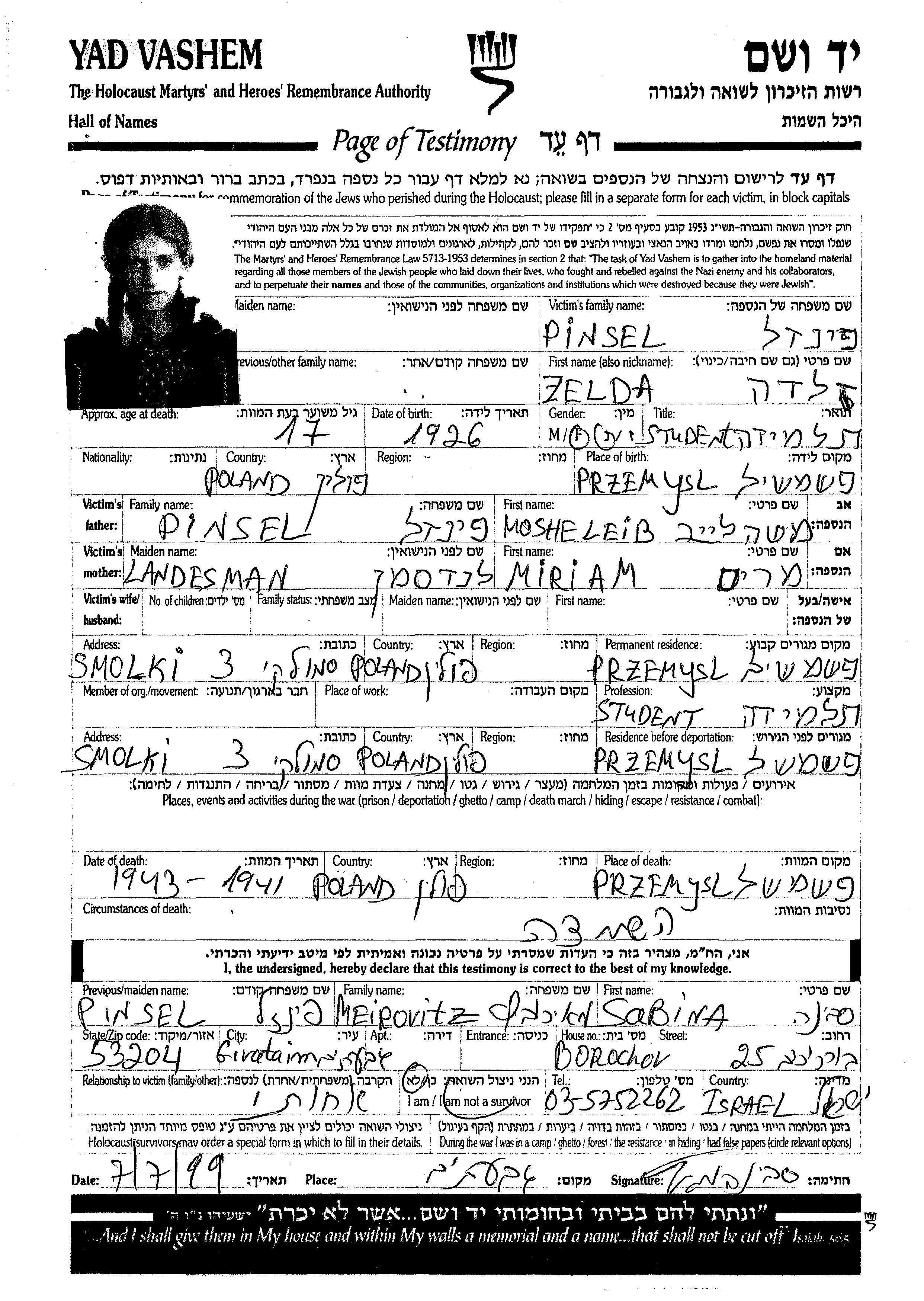 Yad Vashem - Pages of Testimony Names Memorial Collection