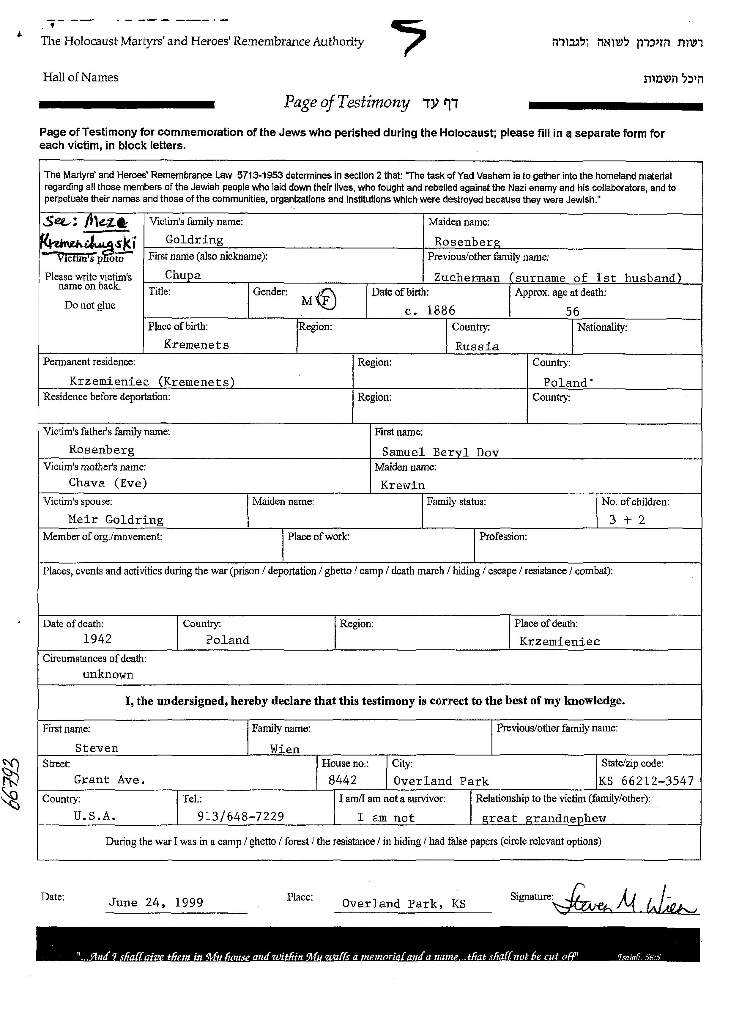 Yad Vashem - Pages of Testimony Names Memorial Collection