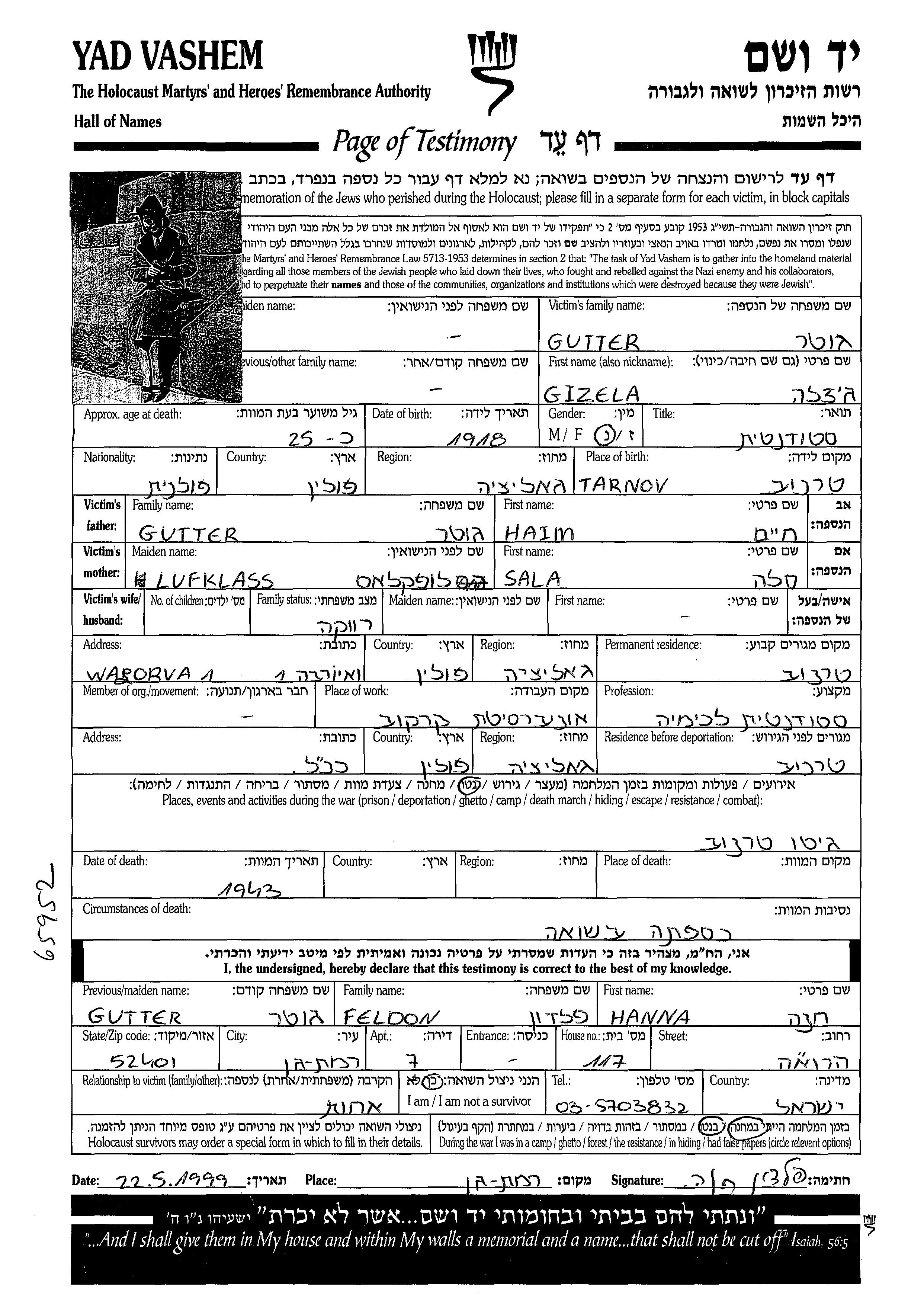 Yad Vashem - Pages of Testimony Names Memorial Collection