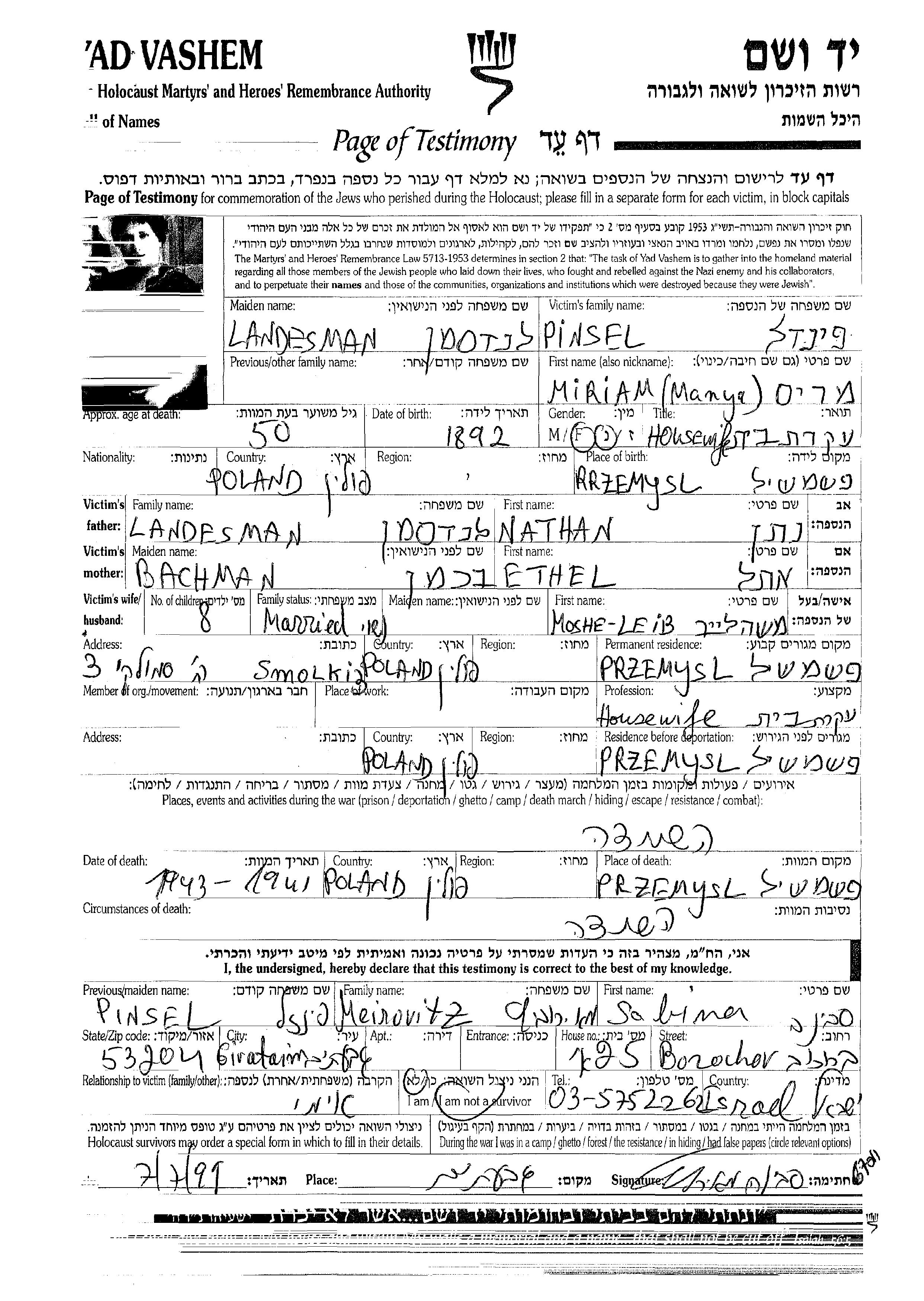 Yad Vashem - Pages of Testimony Names Memorial Collection