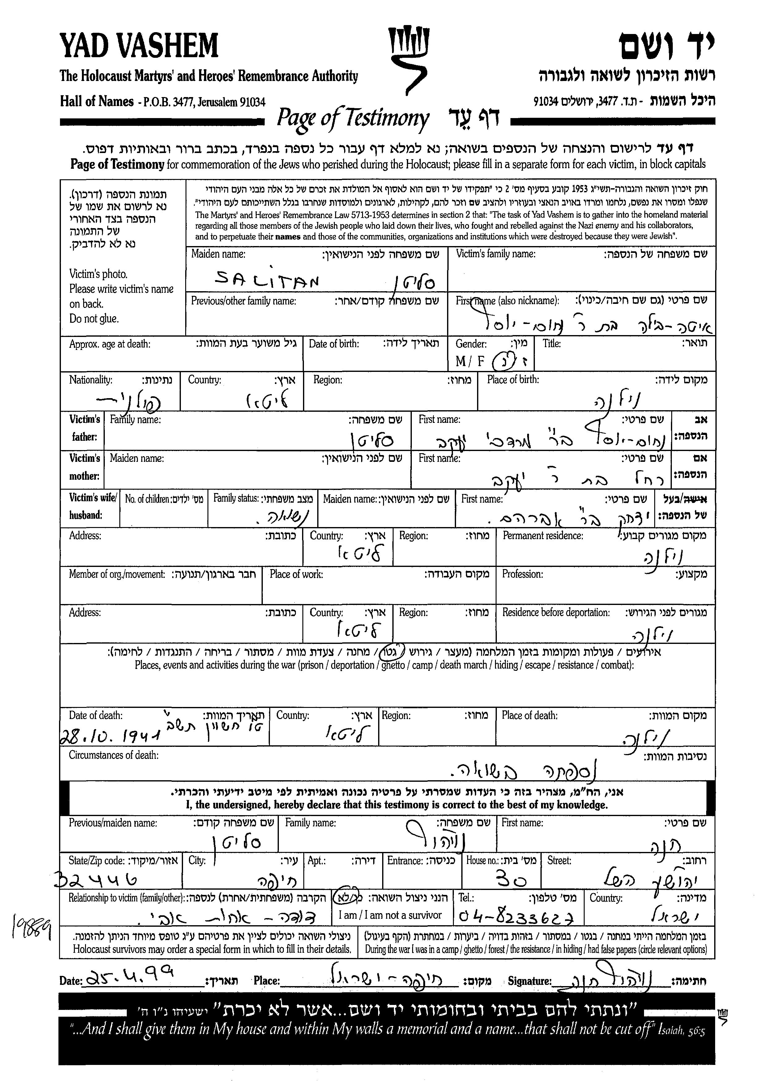 Yad Vashem - Pages of Testimony Names Memorial Collection