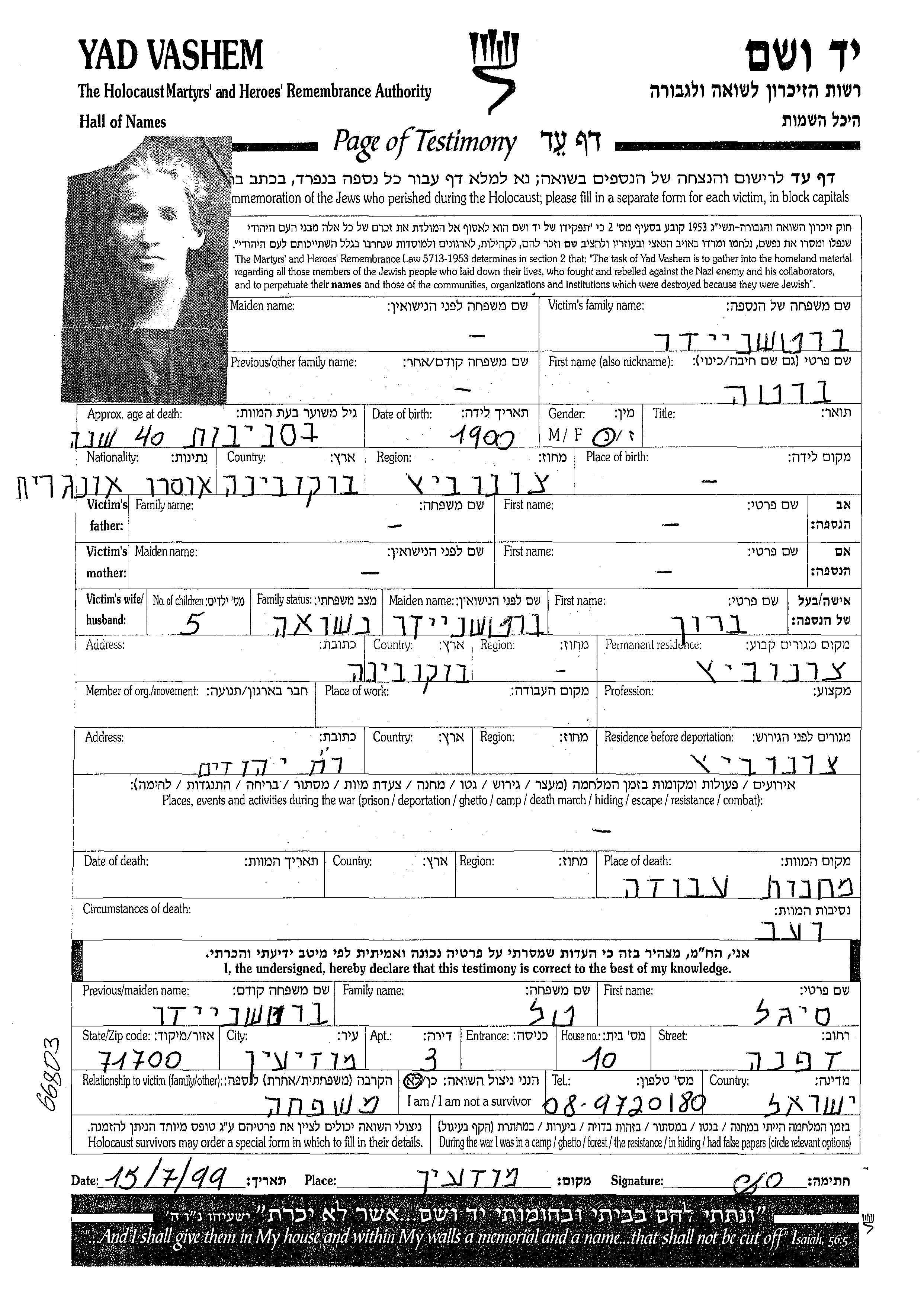 Yad Vashem - Pages of Testimony Names Memorial Collection