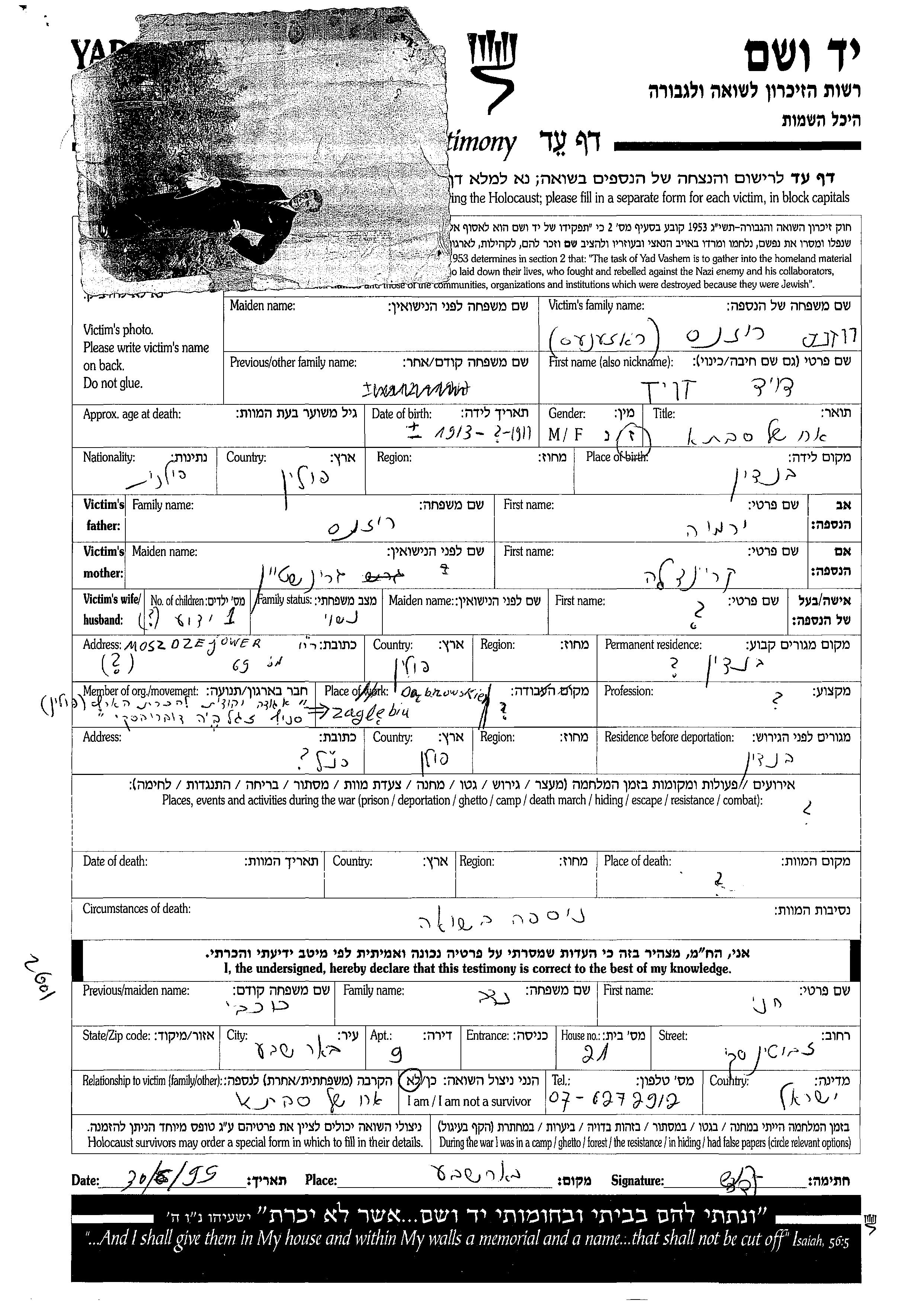 Yad Vashem - Pages of Testimony Names Memorial Collection