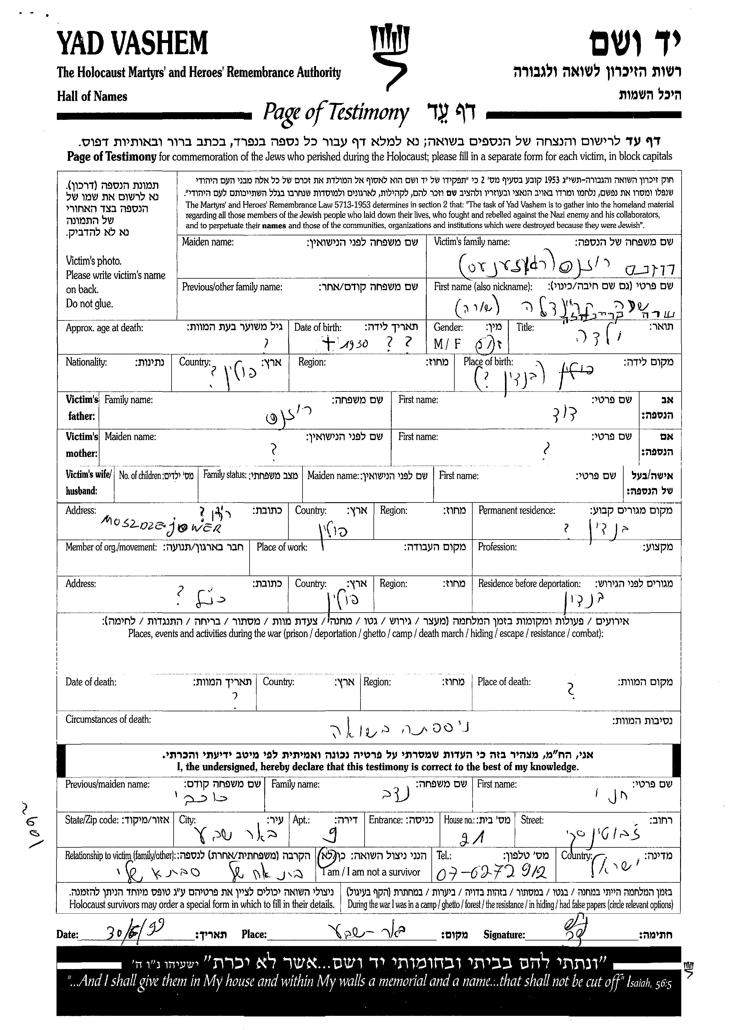 Yad Vashem - Pages of Testimony Names Memorial Collection