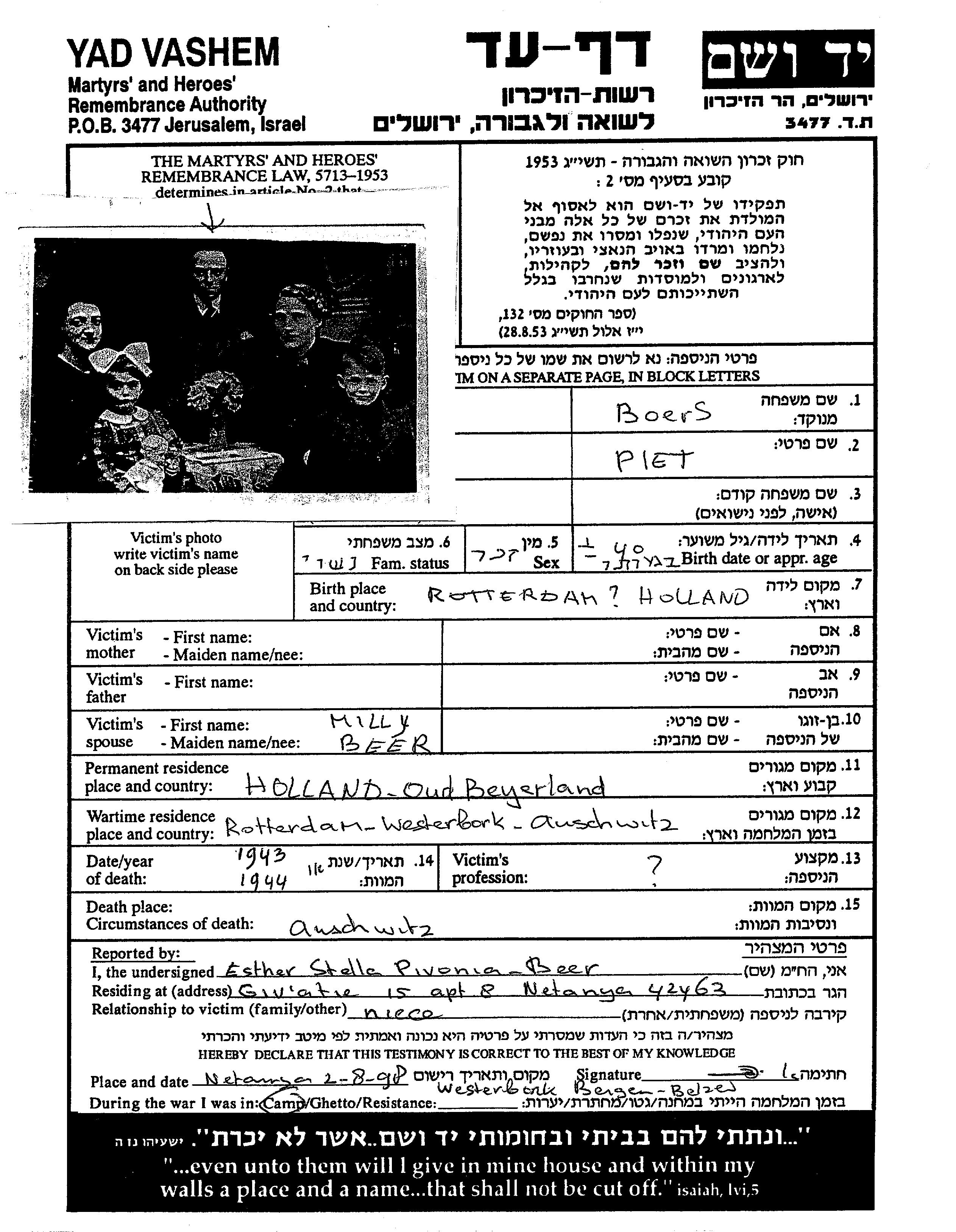Yad Vashem - Pages of Testimony Names Memorial Collection