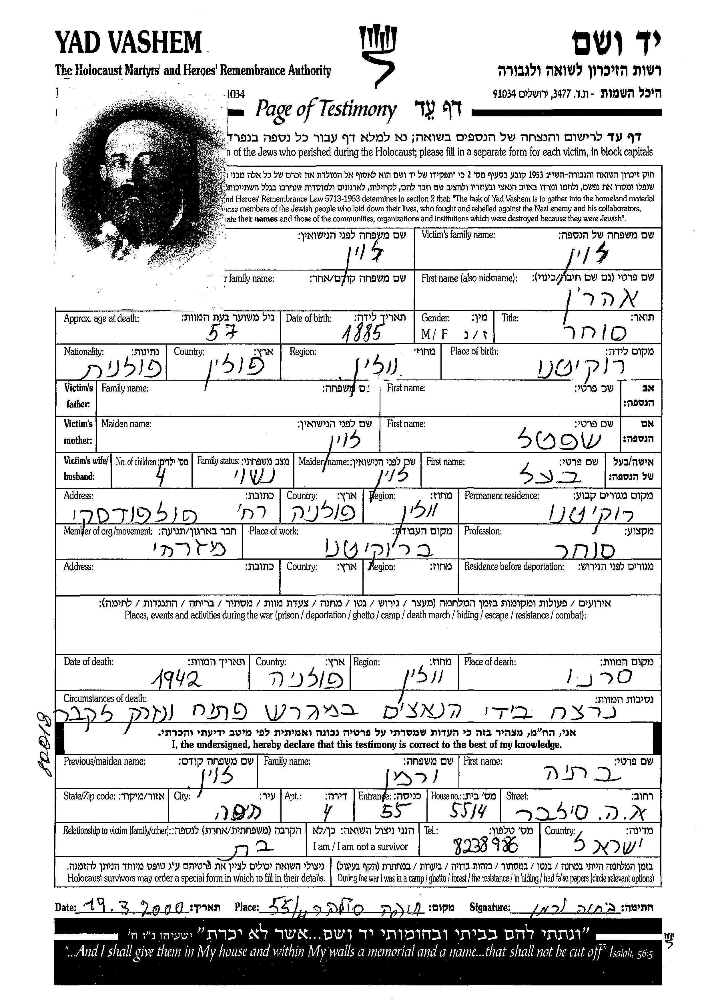 Yad Vashem - Pages of Testimony Names Memorial Collection