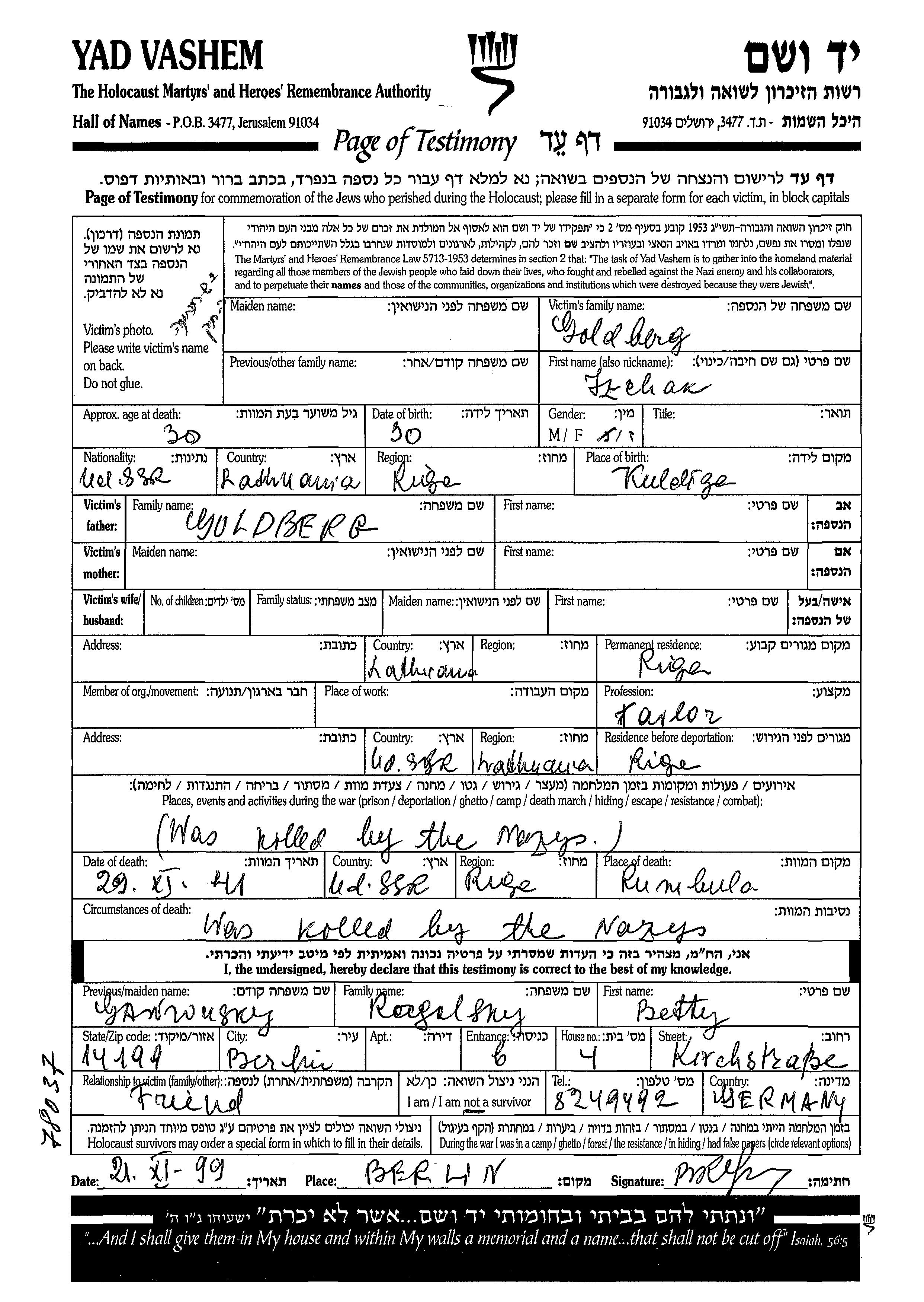 Yad Vashem - Pages of Testimony Names Memorial Collection