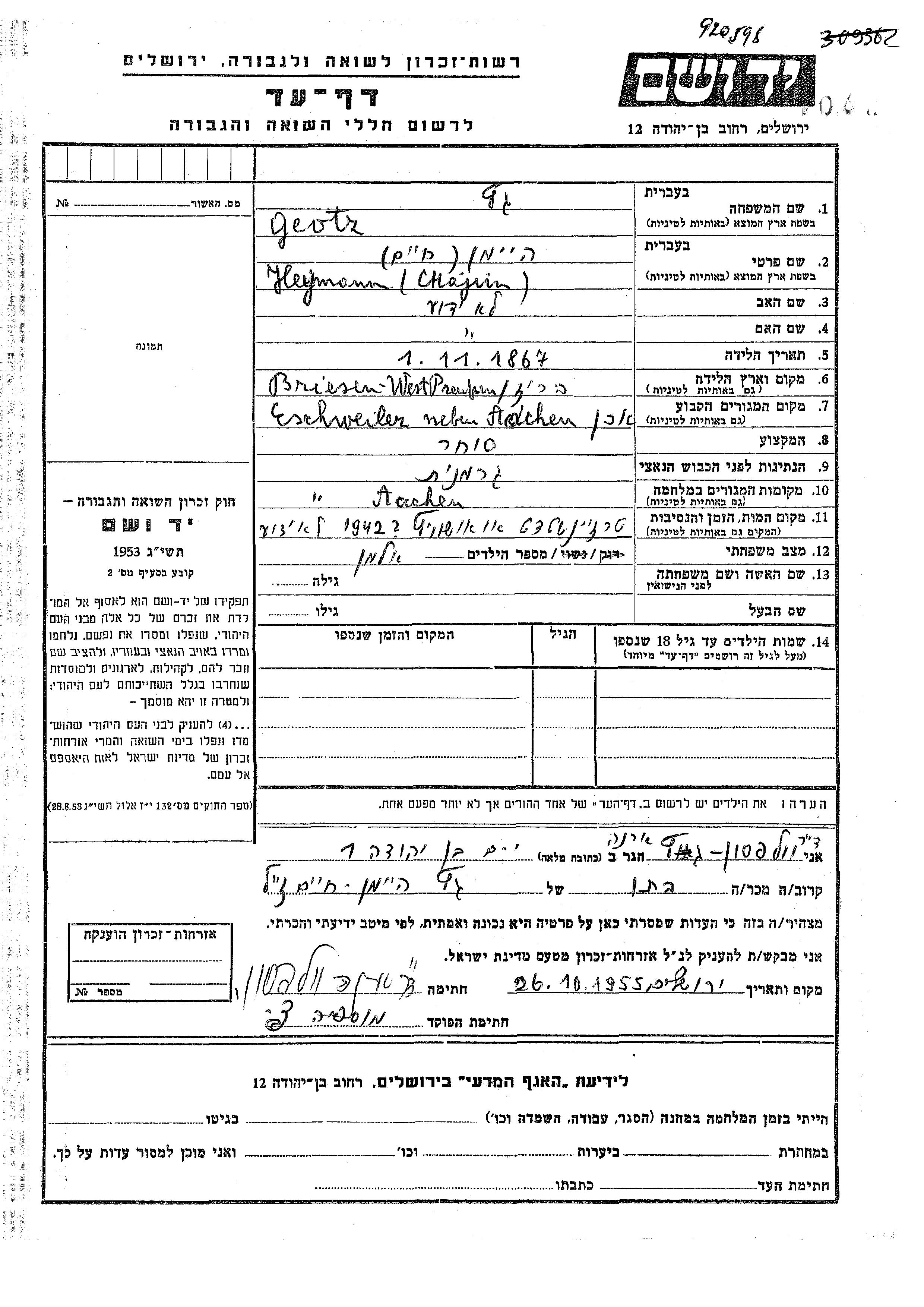 Goetz | Heymann Harry | 1867 | Eschweiler, Allemagne | Feuille de témoignage |