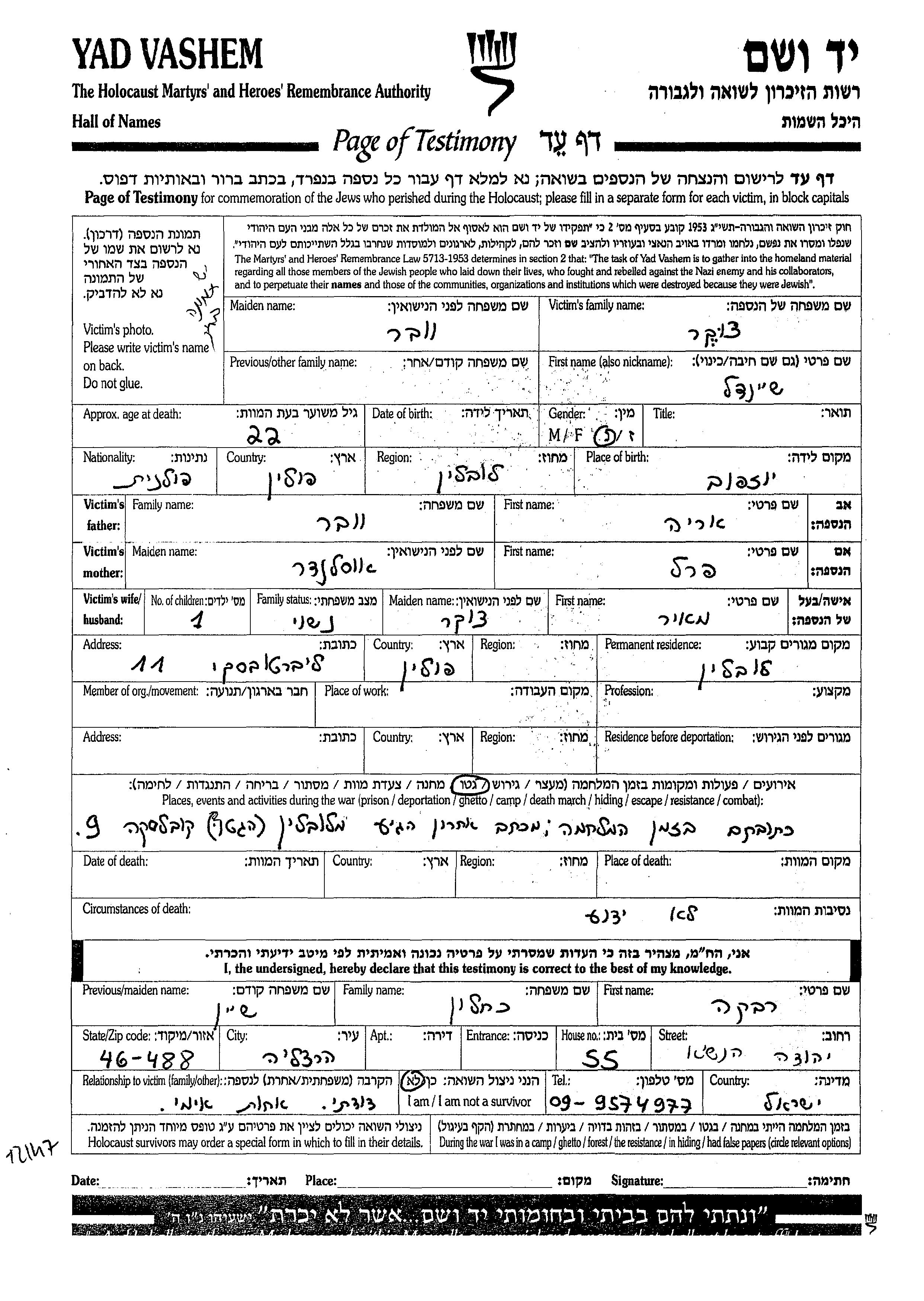 Yad Vashem - Pages of Testimony Names Memorial Collection