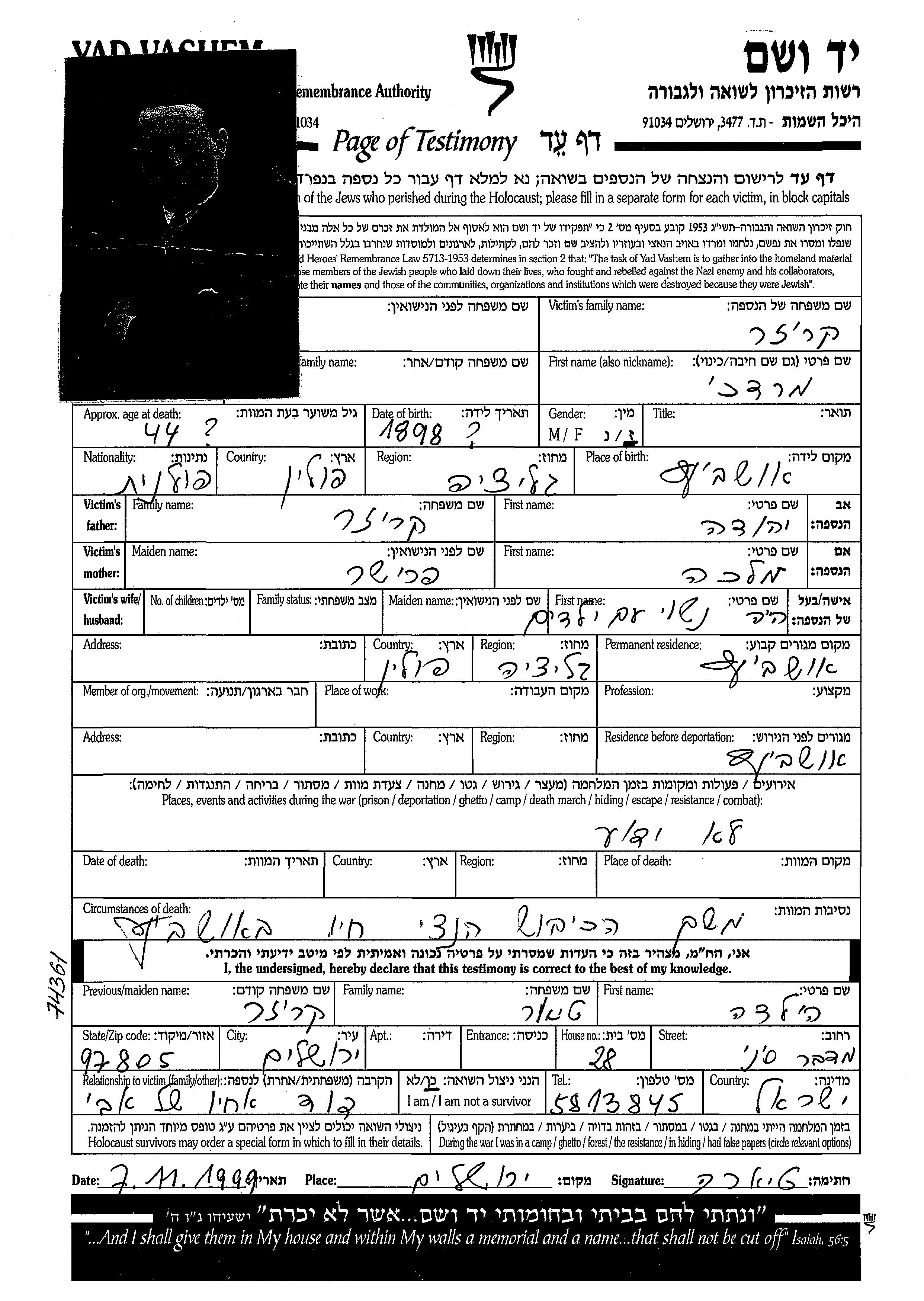 Yad Vashem - Pages of Testimony Names Memorial Collection