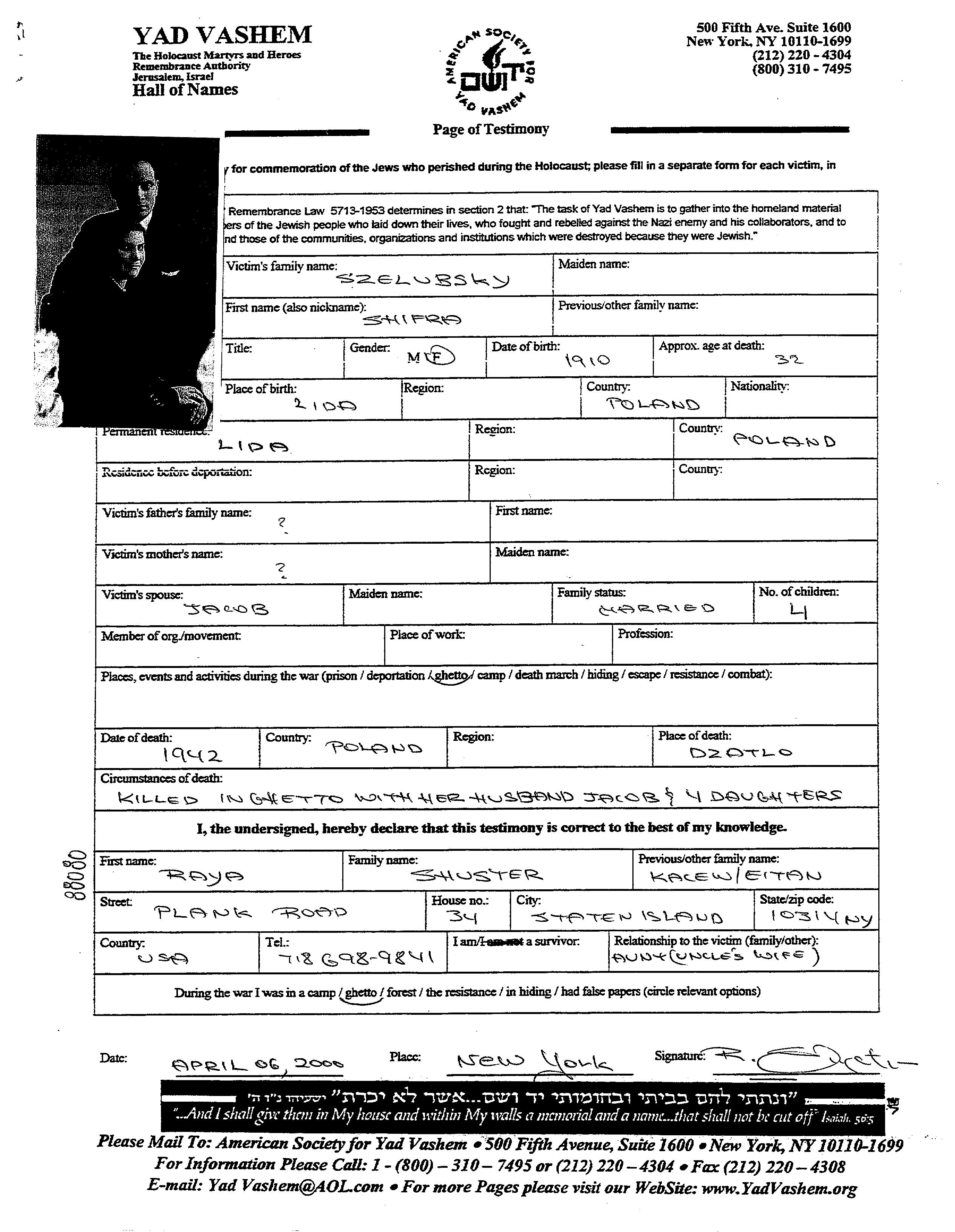 Recherche par date de la mort pendant la période de la Shoah: 1933-1945. Sélectionnez 'Exact'; dans la liste pour rechercher l'année exacte, ou sélectionner '+/- 2 ans'; ou '+/- 5 ans