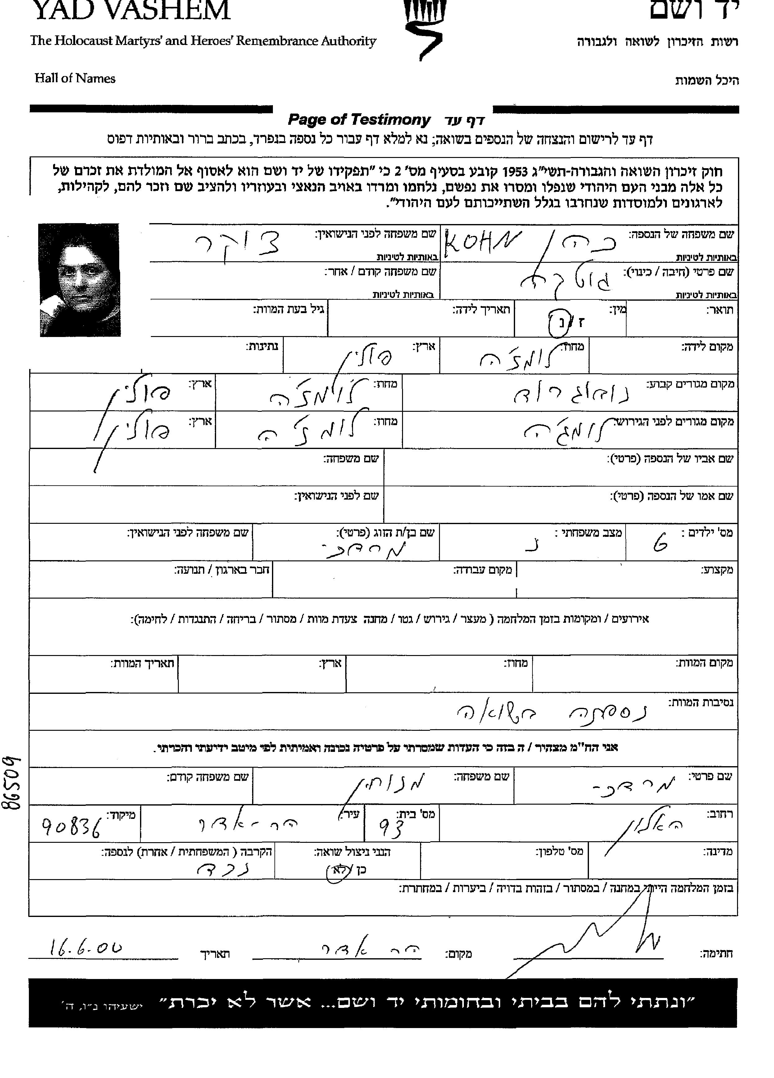 Yad Vashem - Pages of Testimony Names Memorial Collection