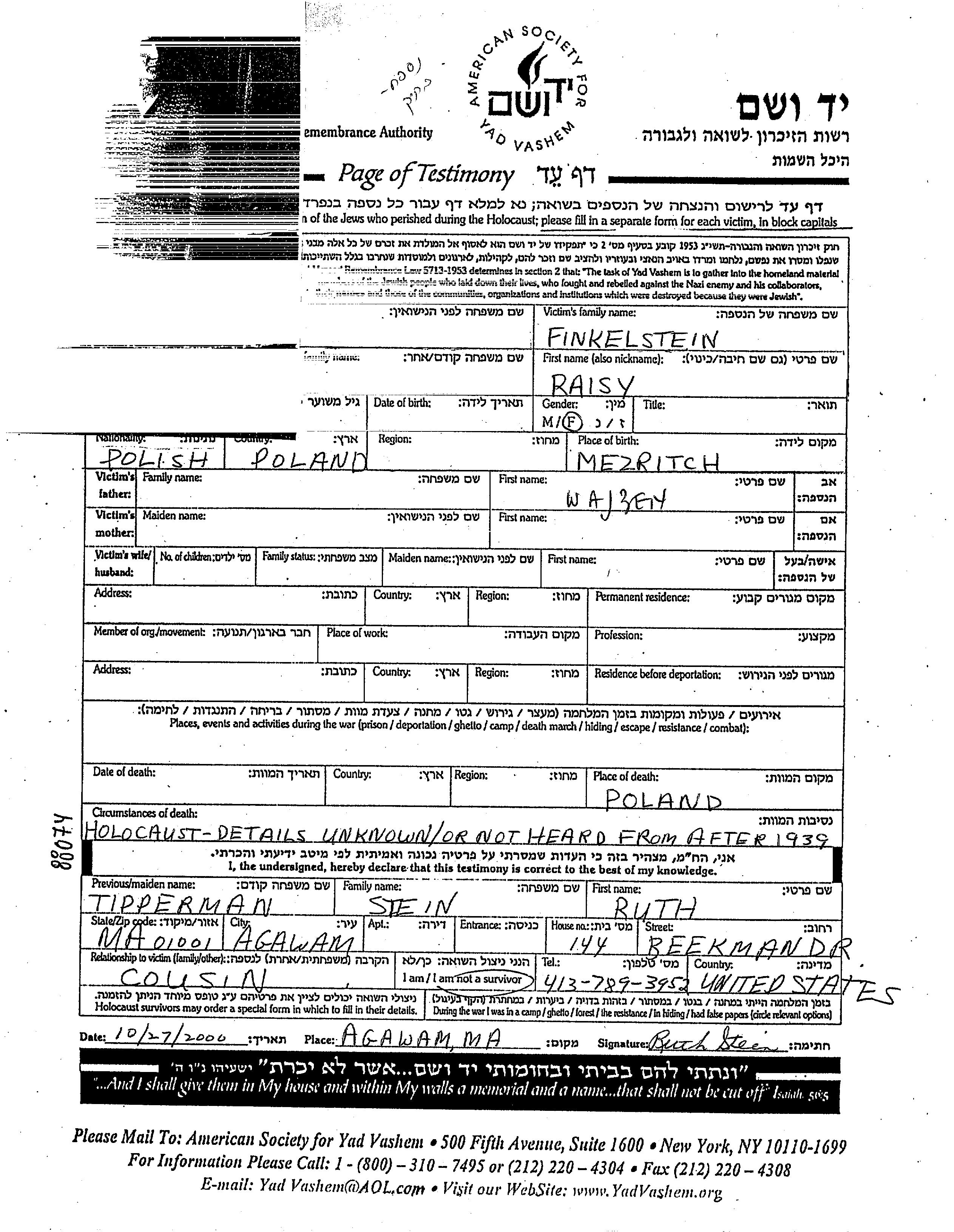 Recherche par nom du dépositeur de la Feuille de témoignage. Cette recherché indique aussi les noms de jeunes filles.