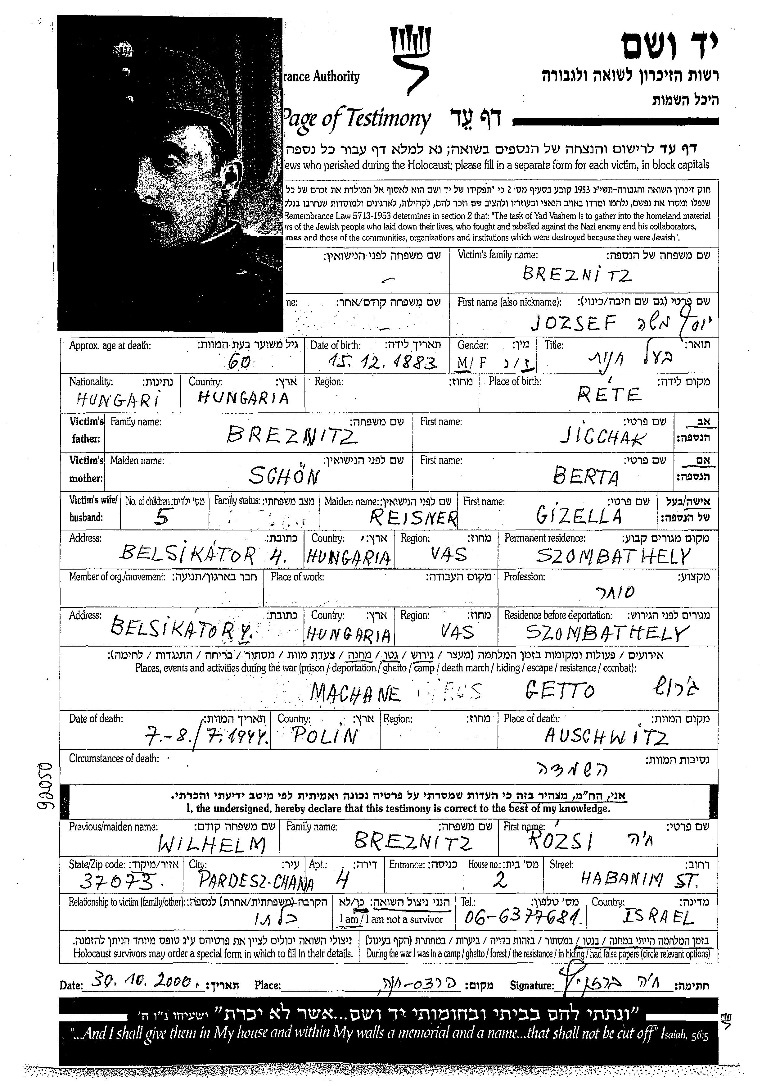 Recherche par lieu de résidence permanente avant la Shoah, ville, village, département, région ou pays.