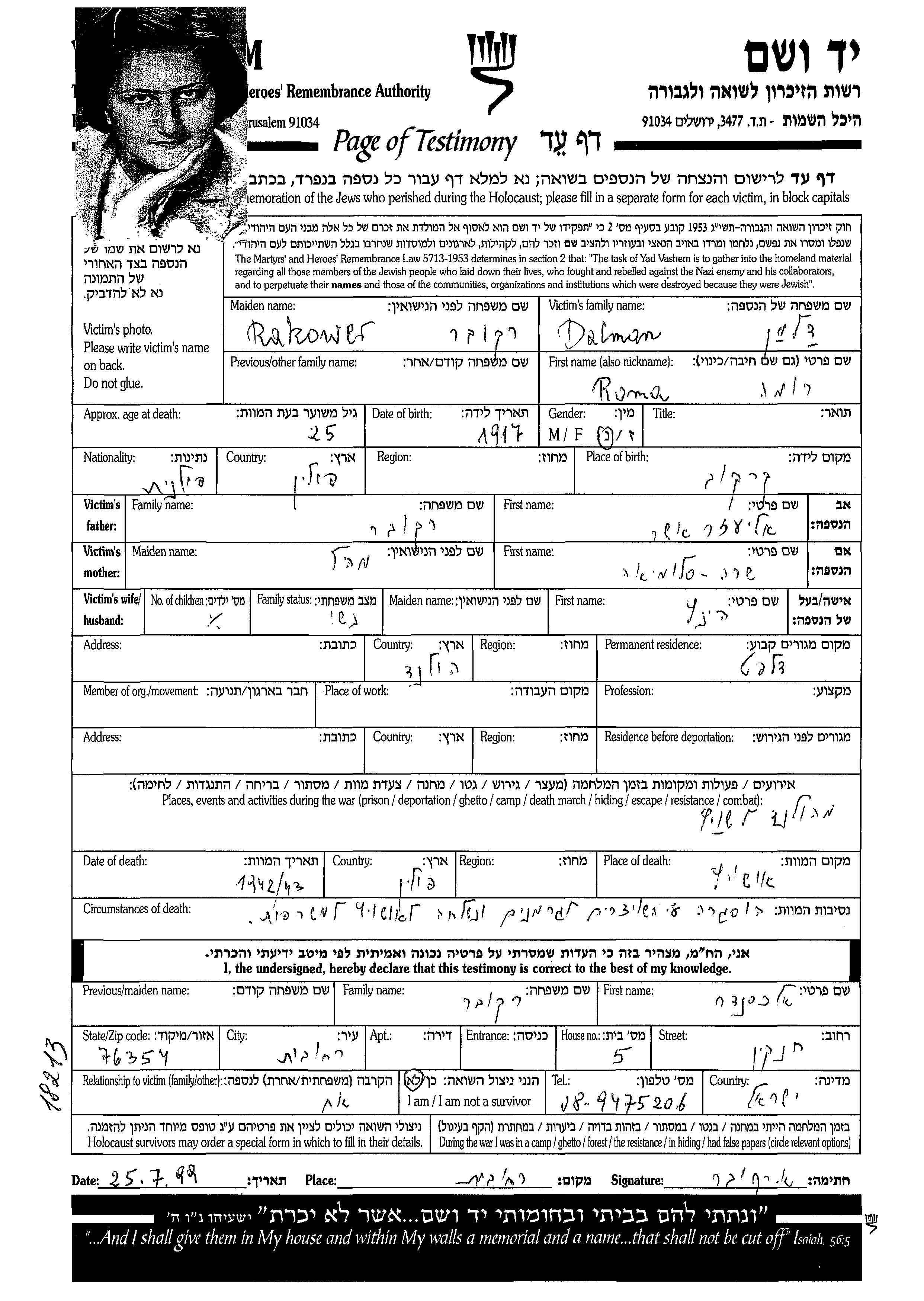 Yad Vashem - Pages of Testimony Names Memorial Collection
