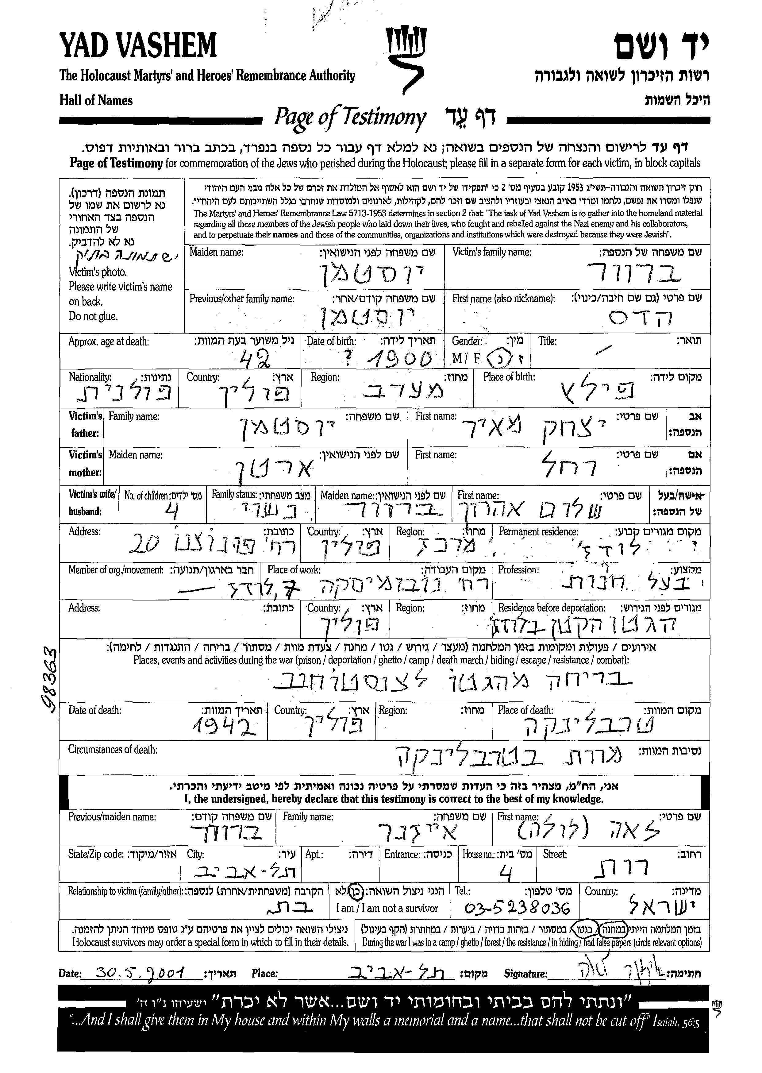 Yad Vashem - Pages of Testimony Names Memorial Collection
