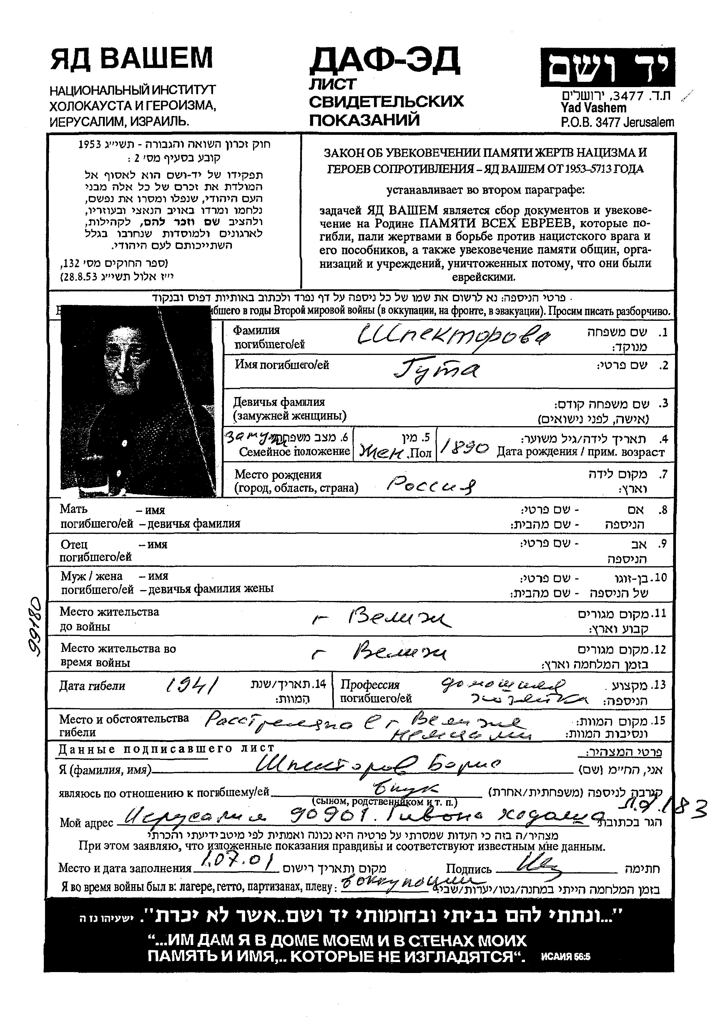 Yad Vashem - Pages of Testimony Names Memorial Collection