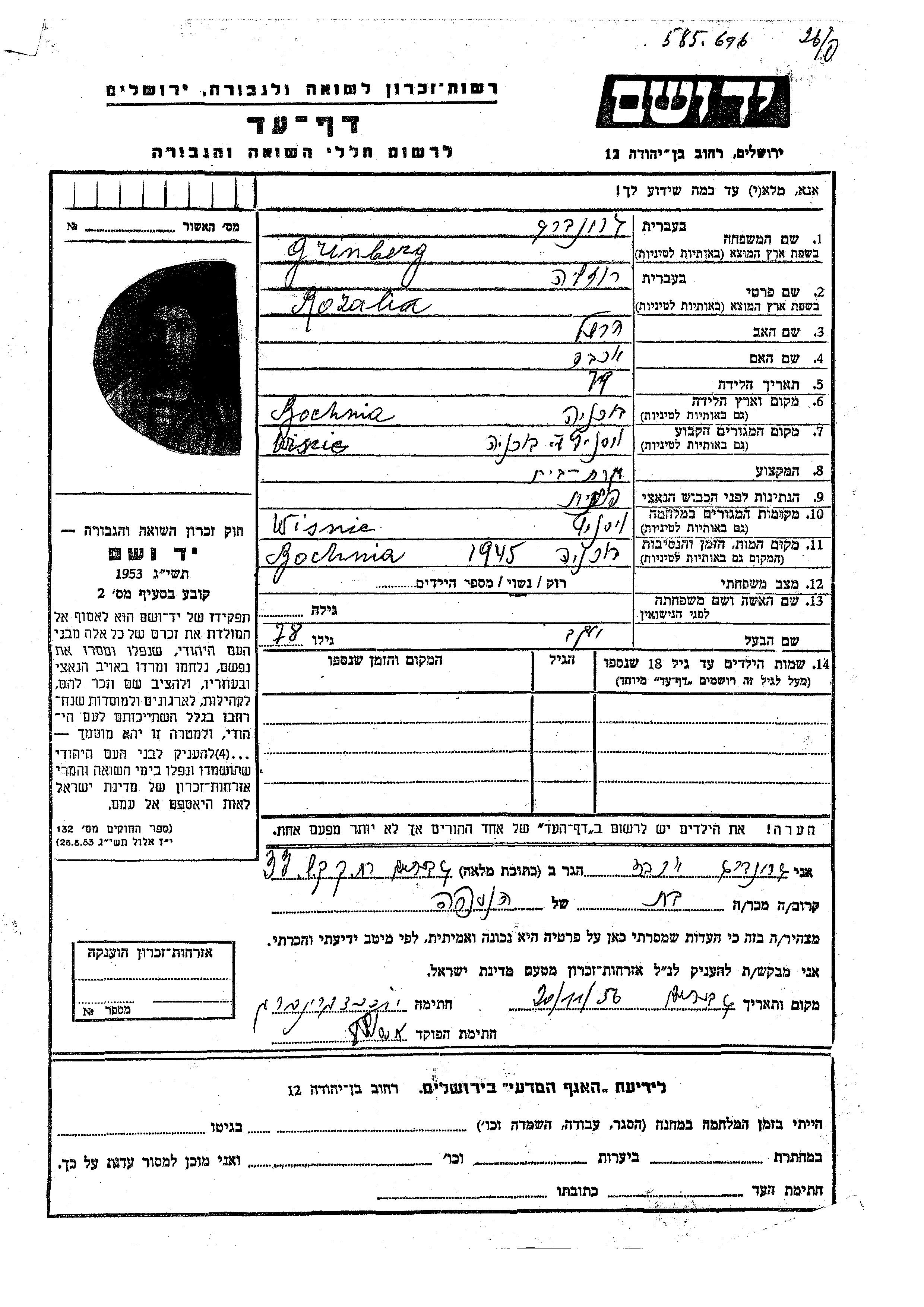Yad Vashem - Pages of Testimony Names Memorial Collection