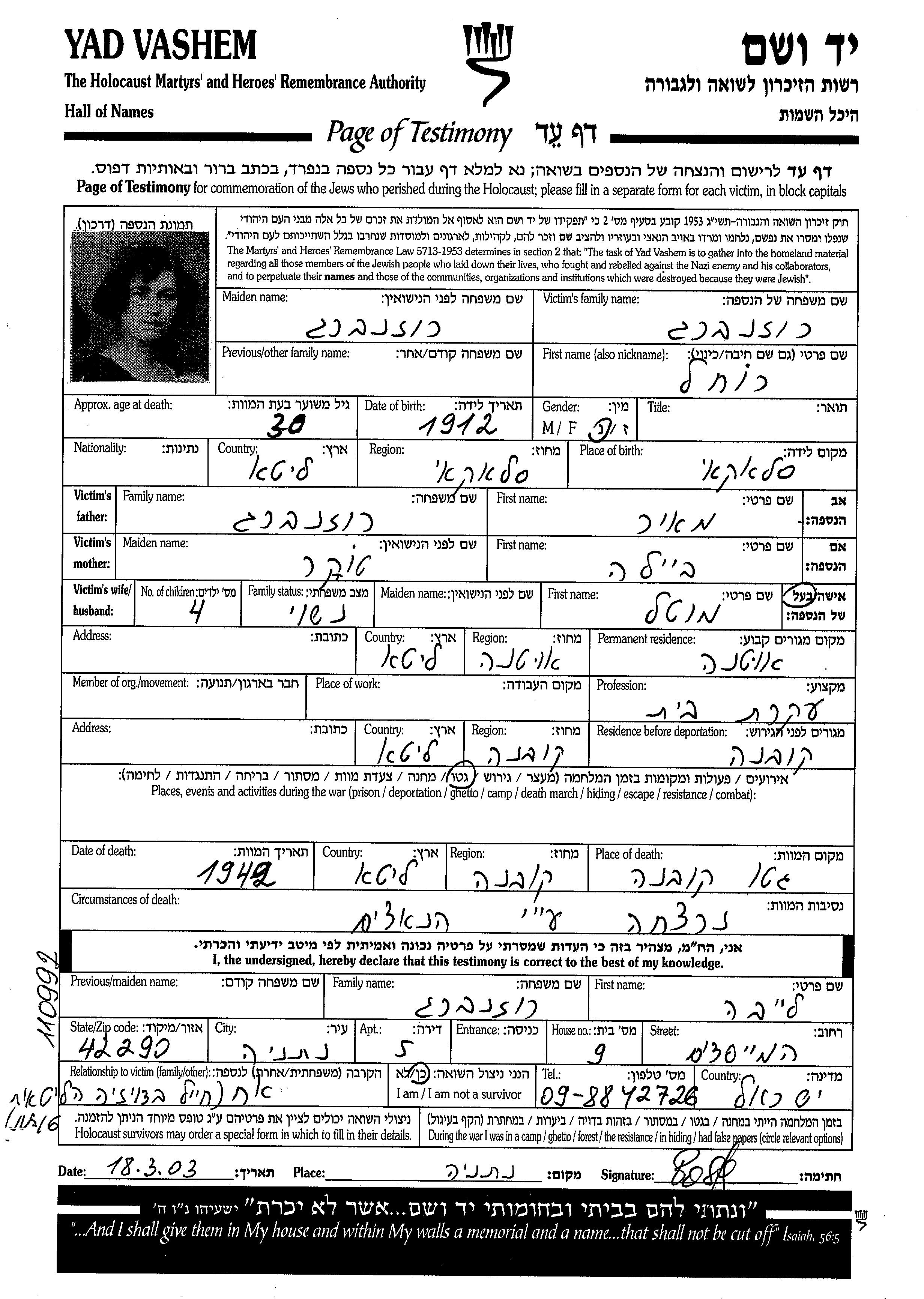 Yad Vashem - Pages of Testimony Names Memorial Collection